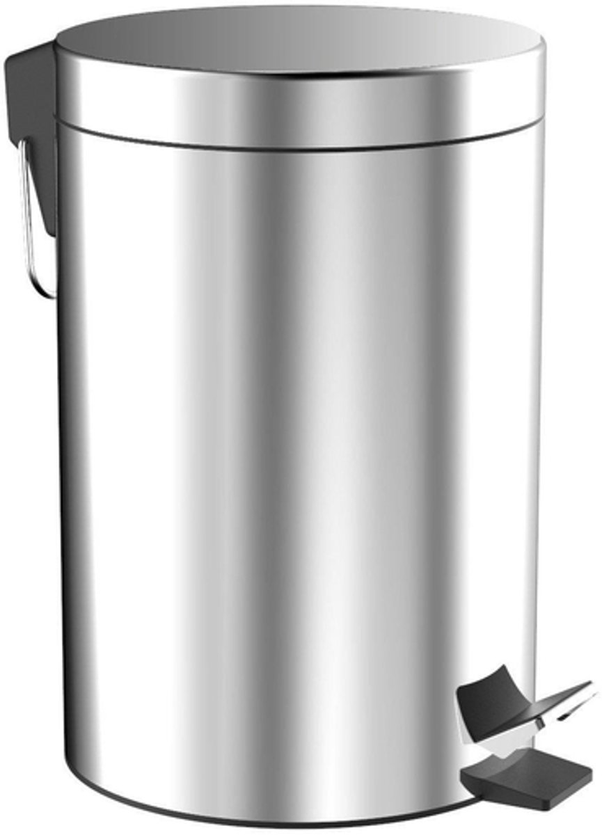 Emco System 2 afvalemmer, roestvaststaal (RVS), chroom, (hxb) 285x205mm, diameter 20.5mm, diepte 275mm, rond, vrijstaand, met losse inzet, inzet kunststof, met deksel, voetbediening deksel, verdekte bevestiging, met bevestigingsmateriaal, inhoud 5L