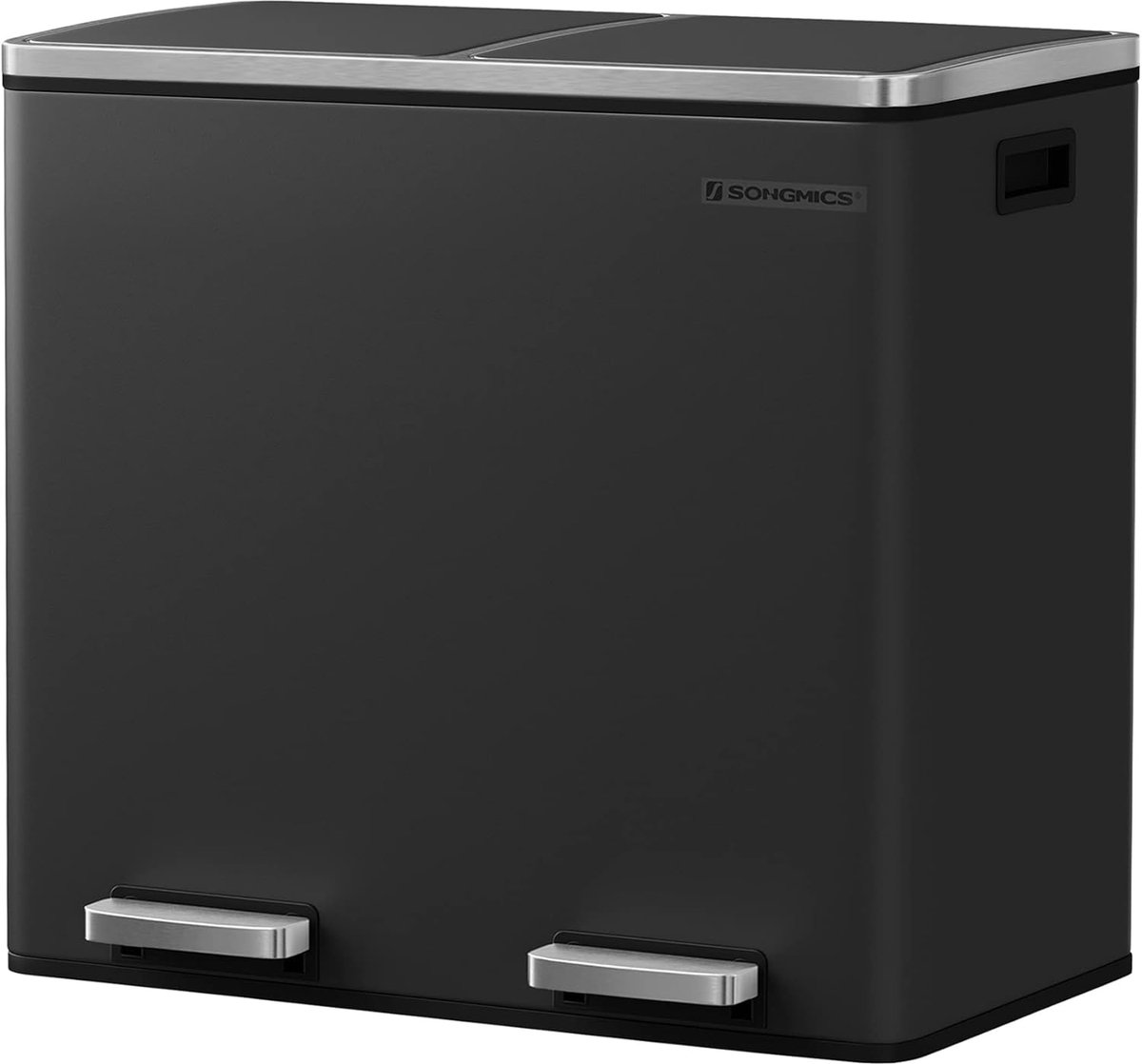 Luxe Afvalemmer Keuken 48L – Dubbele Pedaalemmer met Soft-Close Deksel – 2 Gescheiden Vakken – Hygiënisch Afvalscheidingssysteem – Rechthoekige Prullenbak – Roestvrij Staal – Inktzwart – Ganeey