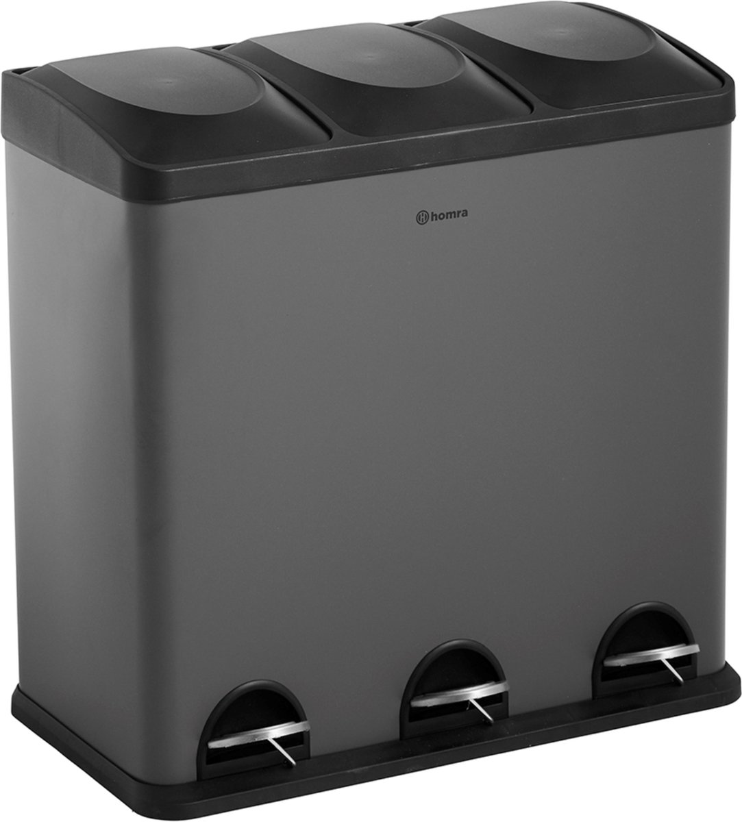 Homra Maxer Prullenbak Afvalscheiding 60 Liter - Grijze Prullenbak 3 vakken - Trio Prullenbak 3 X 20 Liter - Pedaalemmer - Vuilnisbak voor Huishouden en Kantoor - Recycle Vuilbak keuken Afvalemmer - Kookstore.nl