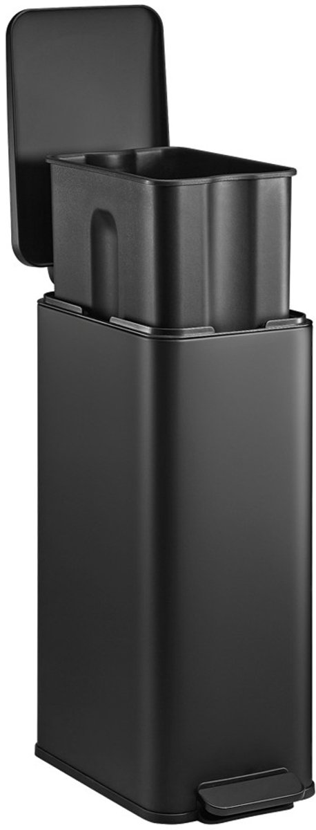De stevige metalen pedaal maakt openen hygiënisch en moeiteloos. Het soft-close deksel sluit zacht en geruisloos, en kan open blijven staan bij het vervangen van de vuilniszak. Dankzij de goede afsluiting blijven geurtjes netjes binnen. De uitneembare binnenemmer zorgt bovendien voor eenvoudig schoonmaken en extra gebruiksgemak.