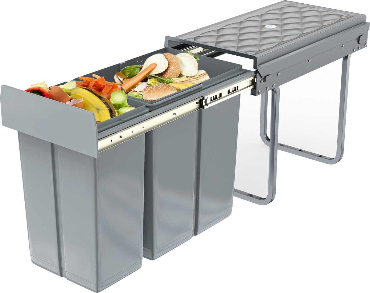 Inbouwafvalemmer inbouw-vuilnisemmer afvalemmer afvalscheidingssysteem met telescopische rails, grijs, 1x20L+1x10L