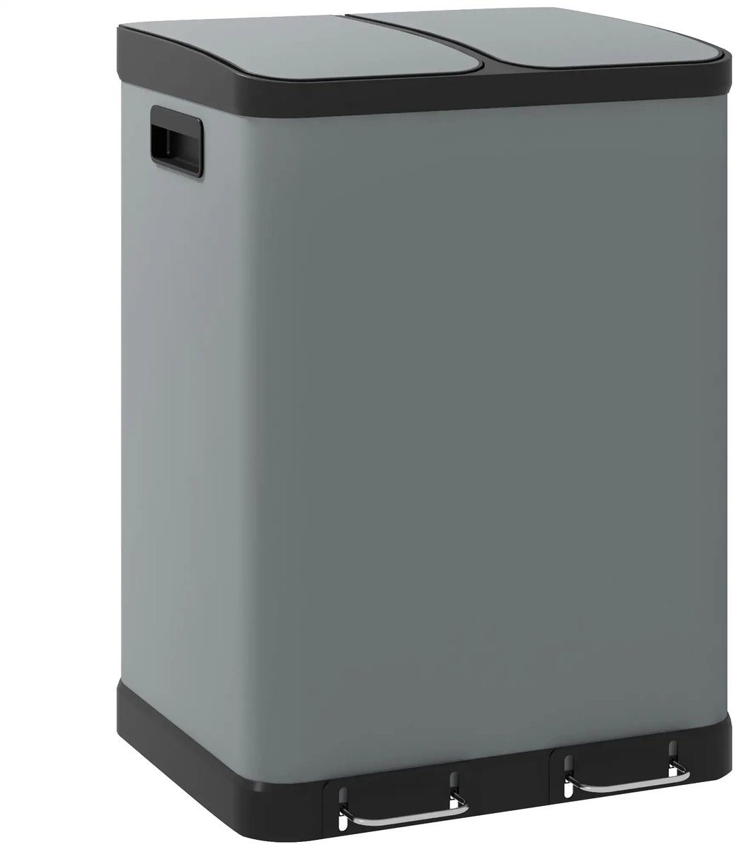 Prullenbak 2 vakken – Afvalscheiding – 2 x 30 L inhoud – Duo pedaalemmer Grijs- Afvalemmer 60 Liter – Recycle Afvalbak – Afvalscheidingsprullenbak – Hygiënisch Afval Scheiden – Keuken Vuilbak – Kantoor Prullenbakk – Grijs