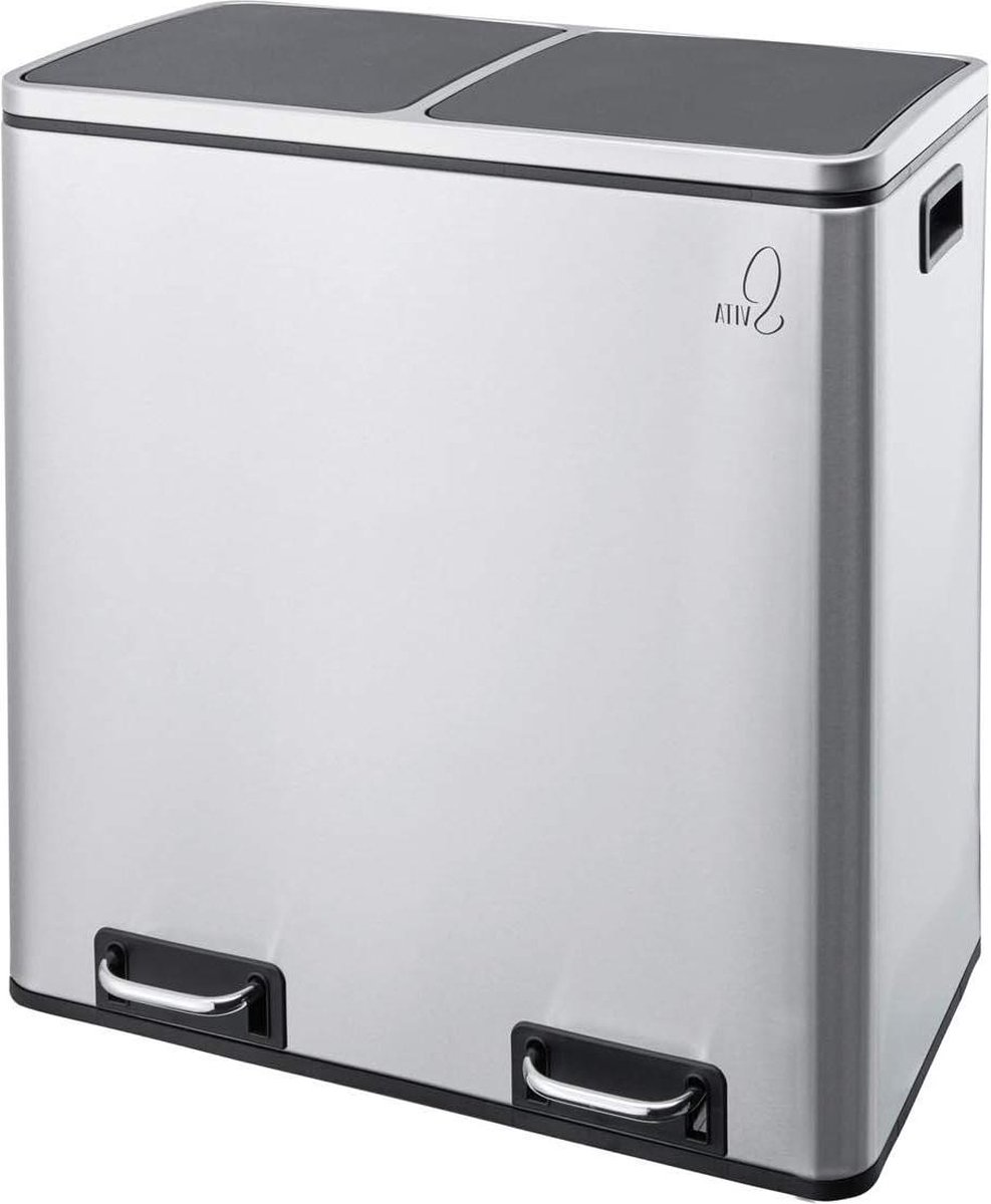 Prullenbak 60 liter zilveren pedaalemmer – afvalemmer vuilnisemmer ontwerp orde scheidingssysteem Prullenbak 60 liter