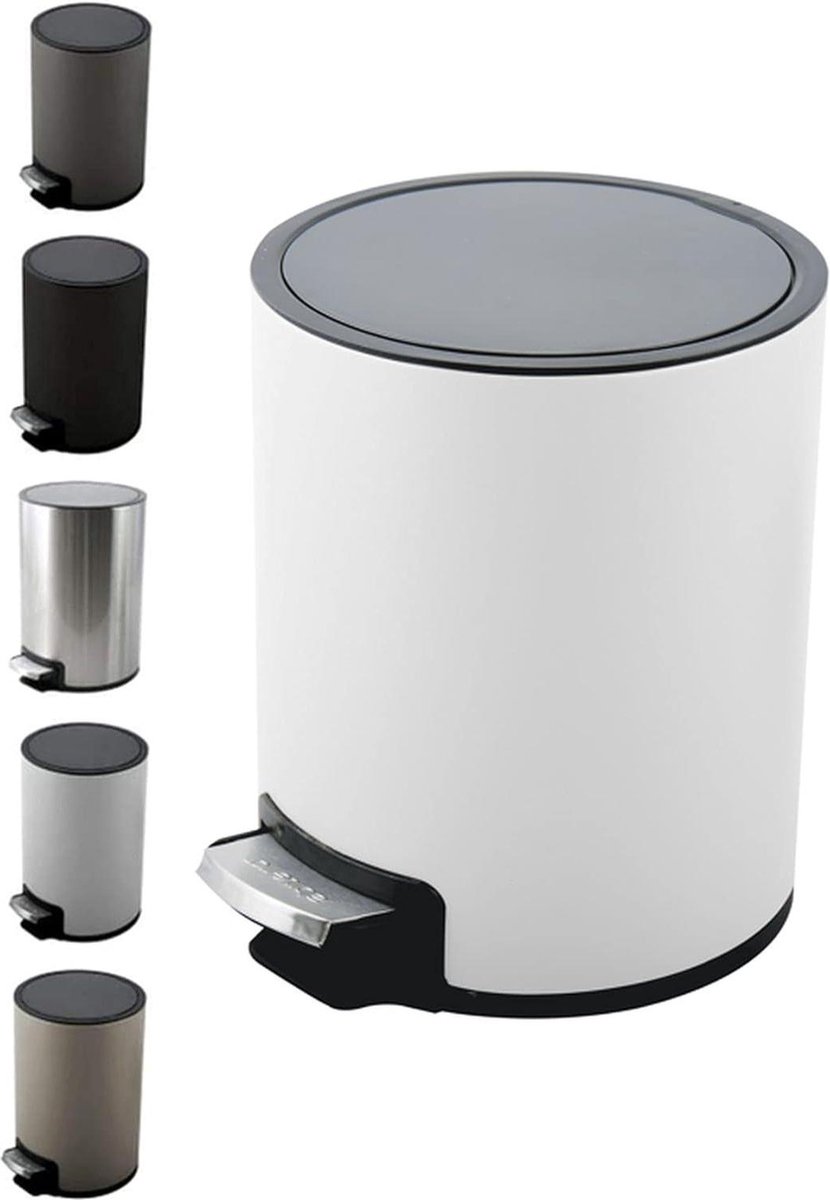 RVS afvalemmer 3 liter of 5 liter – zachte sluiting – binnencontainer – Riku badkamer pedaalemmer – mat wit