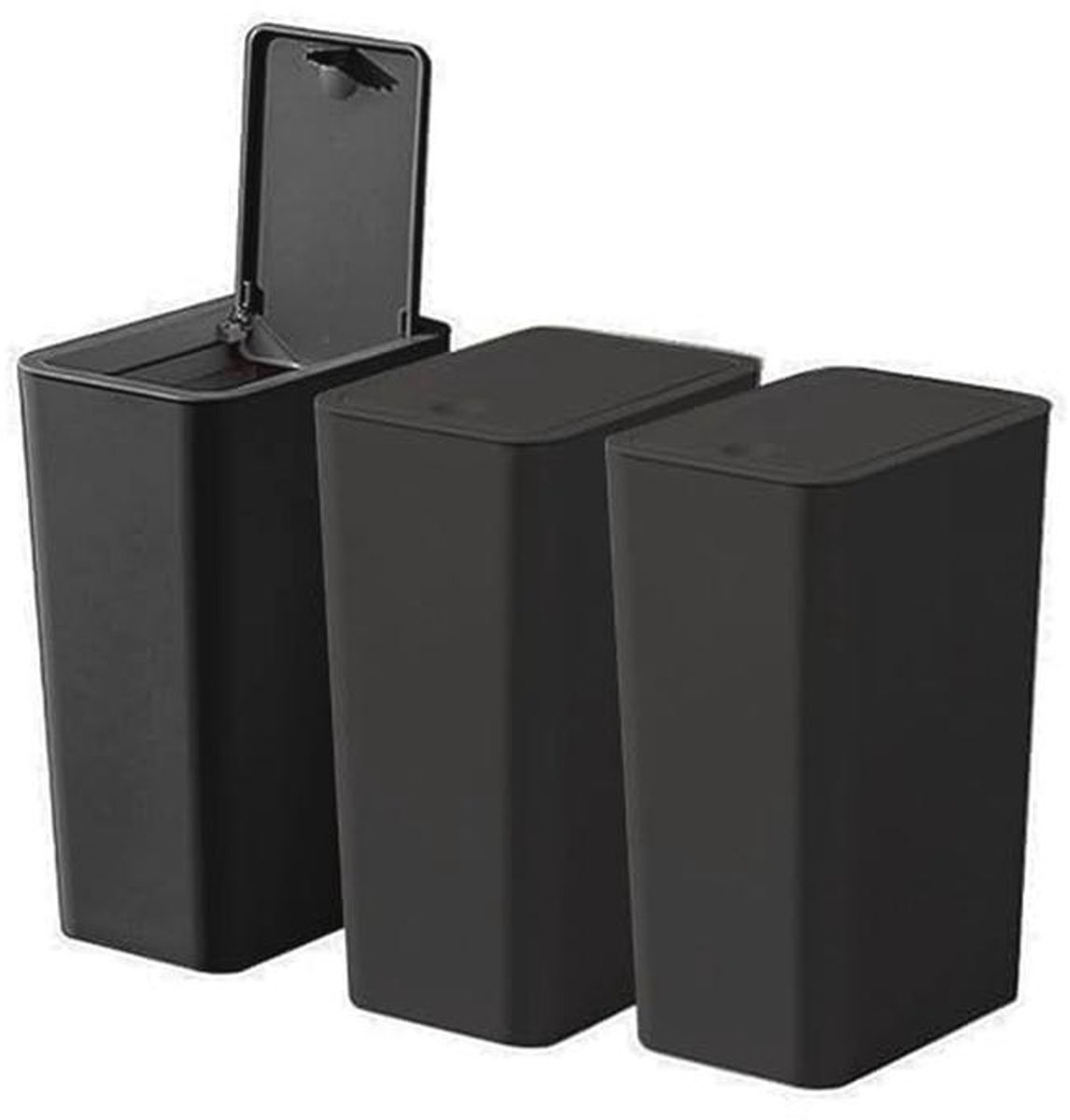Deze set van 3 kleine vuilnisemmers met een inhoud van 10 liter is perfect voor elke ruimte in uw huis of kantoor. Het gebruiksgemakkelijke pop-up-deksel maakt het eenvoudig om de prullenmand te openen en sluiten, terwijl de veerverbinding zorgt voor een soepele werking. Gemaakt van duurzaam polypropeen en verkrijgbaar in zwart, wit, grijs en zwart. De afmetingen zijn 22,2 cm lang, 15,7 cm breed en 33,3 cm hoog. Ideaal voor slaapkamers, woonkamers, keukens, toiletten en kantoren.