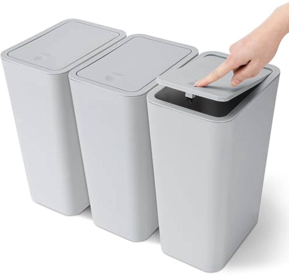 Set van 3 Mini Vuilnisemmers met Pop-up Deksel – Moderne Afvalemmers voor Badkamer, Keuken en Kantoor – 10L