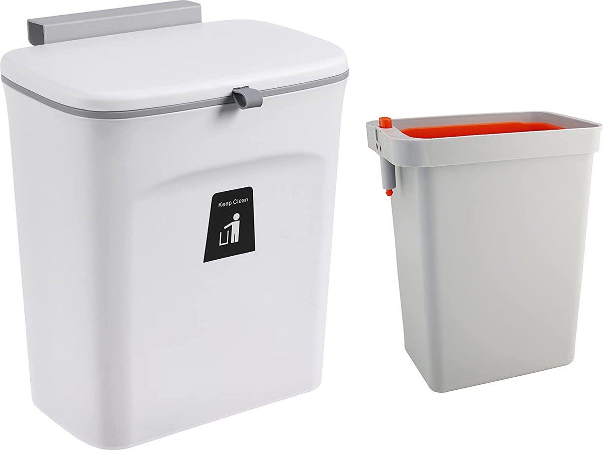 Schoon: De kunststof afvalcontainer (hangend) biedt je een praktische en schone hulp bij het koken. De vuilnisemmer past op deuren of laden met een breedte van 2,4 cm. Met praktisch deksel