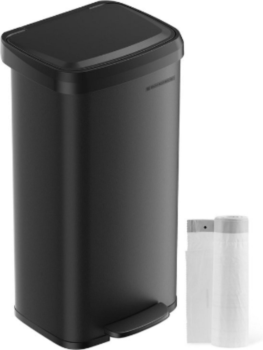 De moderne zwarte afwerking past in elk interieur en het ruime 68L-formaat maakt deze vuilnisbak perfect voor gezinnen of drukke huishoudens.