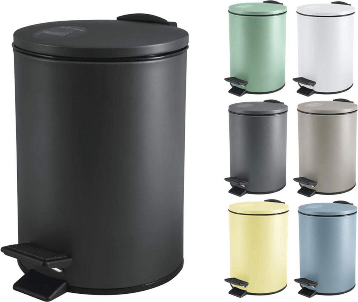 Zwarte Afvalemmer 3 of 5 Liter – Roestvrij Staal met Zachte Sluiting voor Badkamer en Keuken