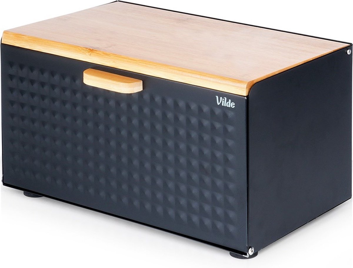 Een ruime broodtrommel met een modern ontwerp dat aan beide zijden geopend kan worden, aan de voorkant en aan de bovenkant. Het ziet er bijzonder effectief uit in de keuken. Het modieuze patroon zorgt ervoor dat het bij elke keuken past. De broodtrommel is uitgerust met een solide, hermetische sluiting die het brood effectief beschermt tegen uitdrogen en versheid verliest. Hierdoor behouden brood, broodjes en andere gebakjes langer hun smaak. Origineel product van het merk Vilde. Geproduceerd volgens Europese normen.