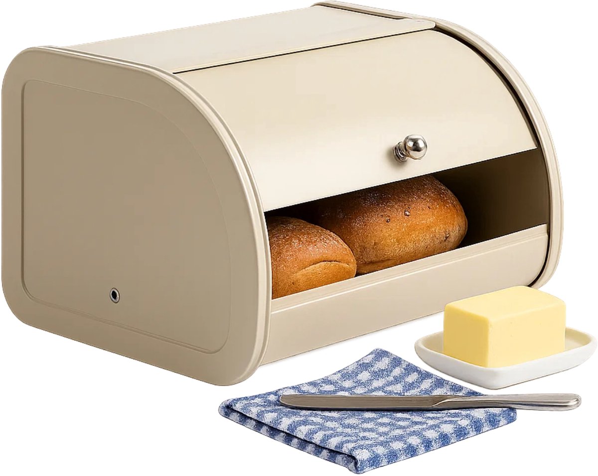 Lomera Broodtrommel Met Schuifdeksel – Ruimtebesparend Ontwerp – Soft Beige Kleur – Retro Design – Keuken Opbergbox – Brood Bewaren – Compacte Broodtrommel – Schuifdeksel Functie – Lichtgewicht Broodtrommel