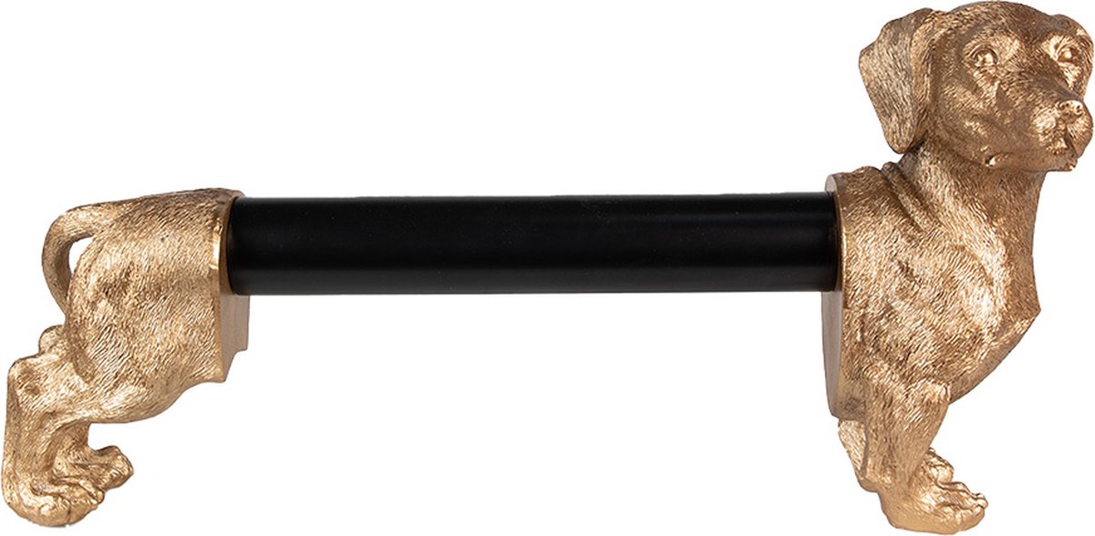 Clayre & Eef Keukenrolhouder Hond 46x15x23 cm Goudkleurig Zwart Polyresin