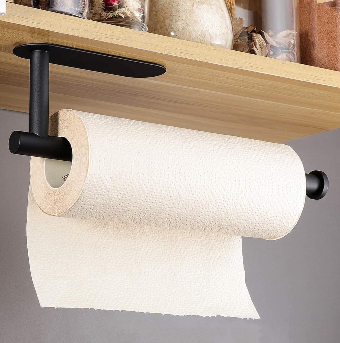 Keukenrolhouder voor aan de muur zonder boren, keukenrolhouder keuken, keukenrolhouder zonder boren, rolhouder, huishoudrolhouder, zwart