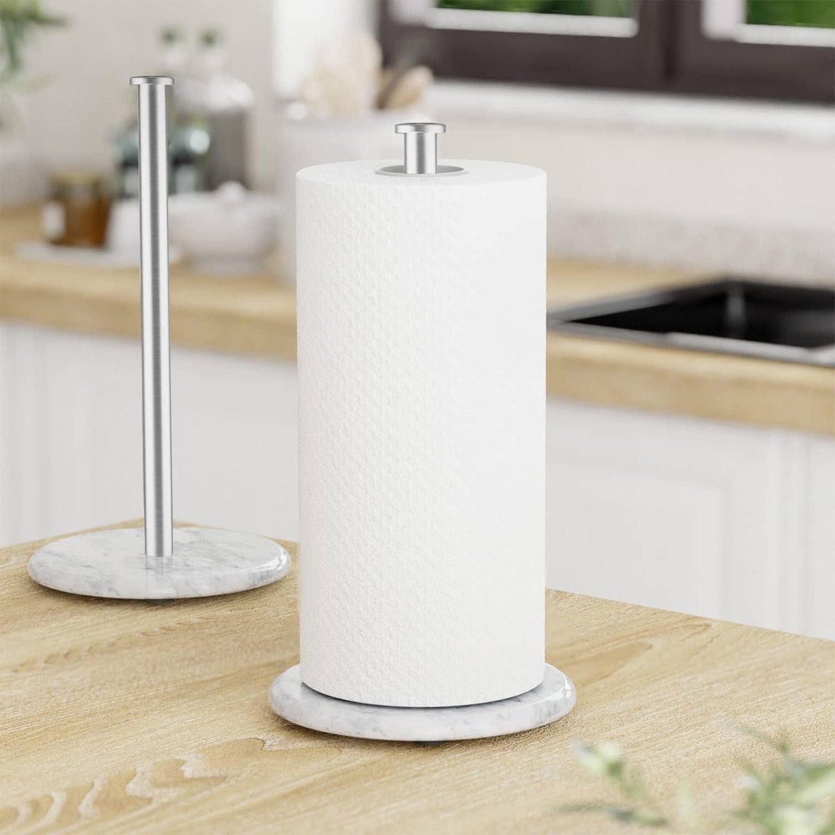 Hoogwaardig materiaal: de keukenrolhouder is gemaakt van hoogwaardig roestvrij staal met marmeren sokkel, robuust en waterdicht en roestvrij.