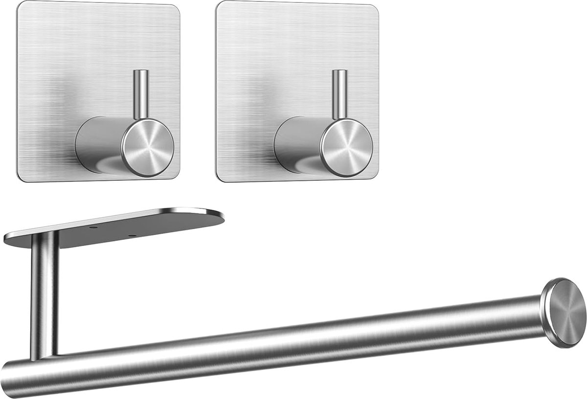 keukenrolhouder zonder boren met 2 zelfklevende haken, RVS houder voor Zewa keukenrol, keukenrolhouder voor wand en onder keukenkasten (zilver)