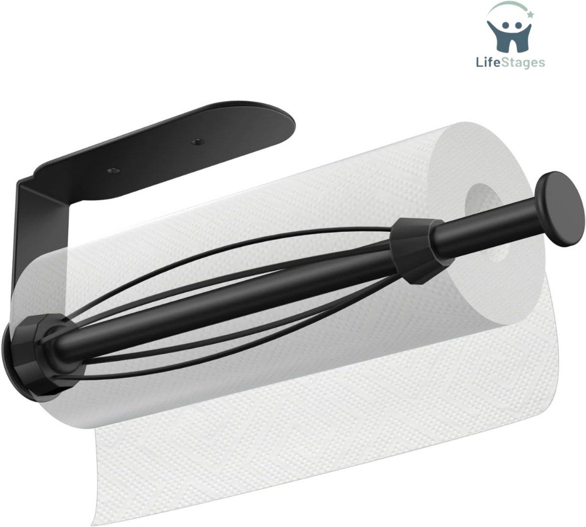 LifeStages – Keukenrolhouder Hangend – Met Eén Hand Te Bedienen – Verwijderbare Keukenrolhouder Voor Keuken-Badkamer – Muur-Onderkast Keukenrolhouder – Zelfklevende En Boorbare Keukenrolhouder