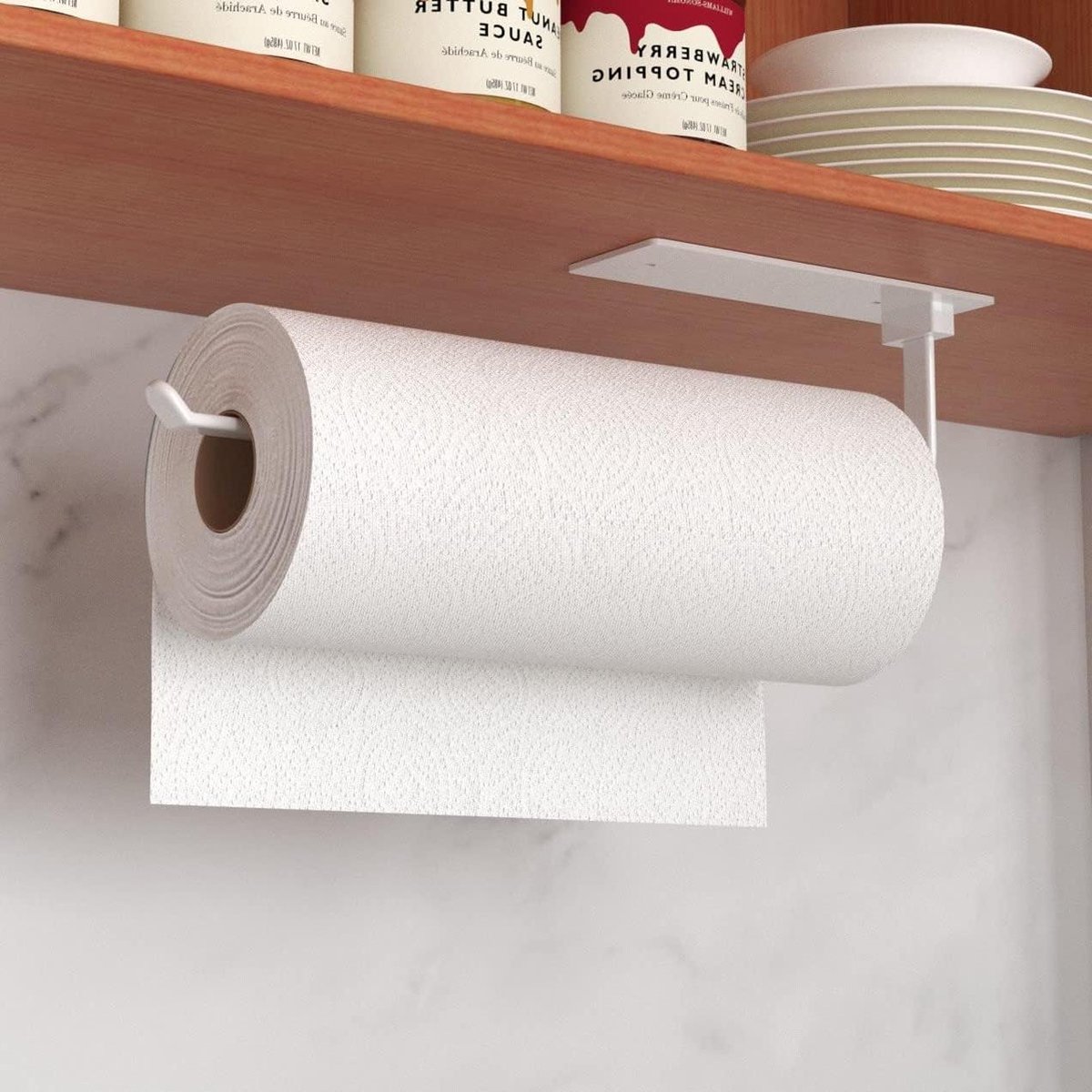 Witte keukenrolhouder zonder boren – keukenpapierhouder zelfklevend – praktische rolhouder voor onderaan de kastjes – opbergen en organiseren – keukenrolhouder aan de muur keukenrolhouder hangende