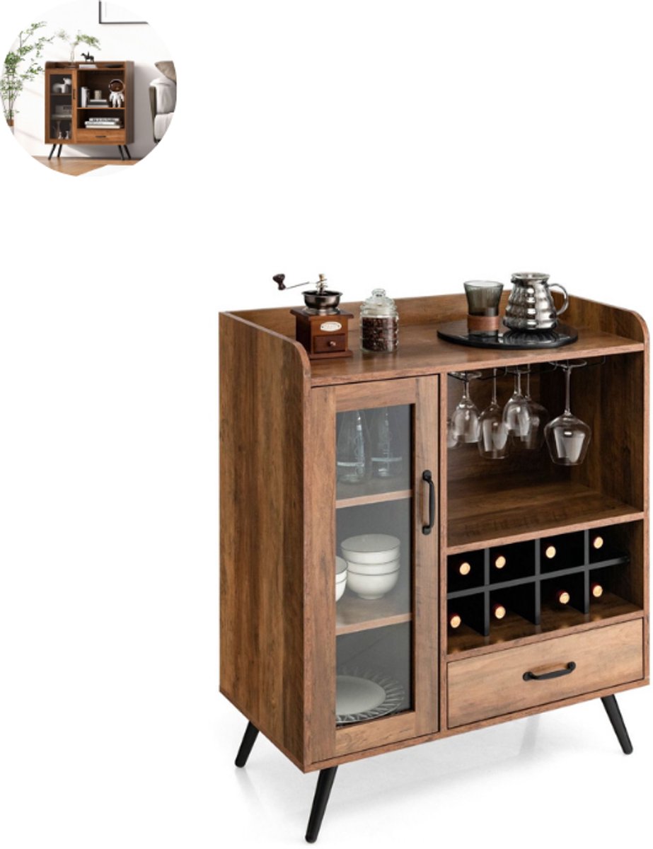 Barkast – Wijnrek – Keukentrolley – Wijnkast – Drankkast – 80 x 40 x 95 cm – Wijnfleshouder – Wijnglazenhouder – Donkerbruin