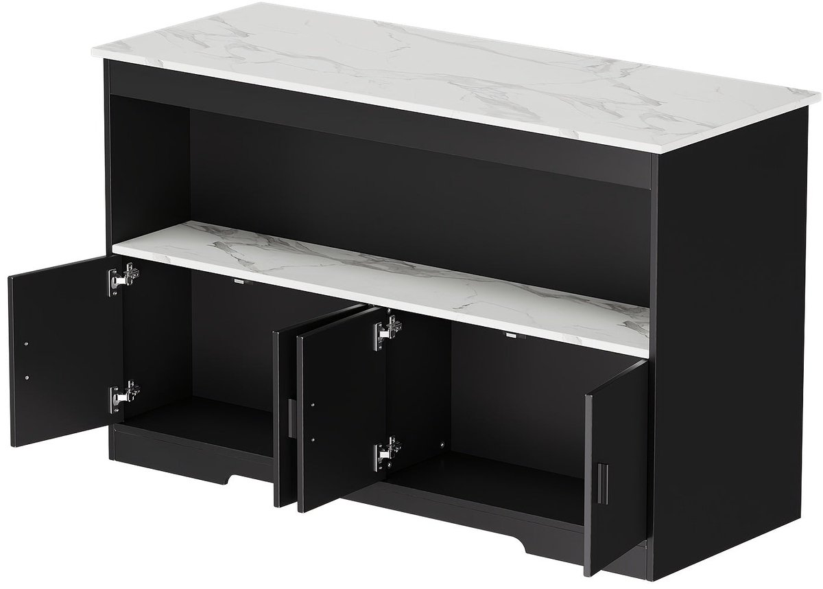 Home Opruimen & Bewaren Keukentrolleys Keukeneiland – Keukentrolley – Keukenkast – Serveerwagen – Buffetkast – Marmerlook Blad – Stevig Hout Met Veel Opbergruimte – Zwart en Wit