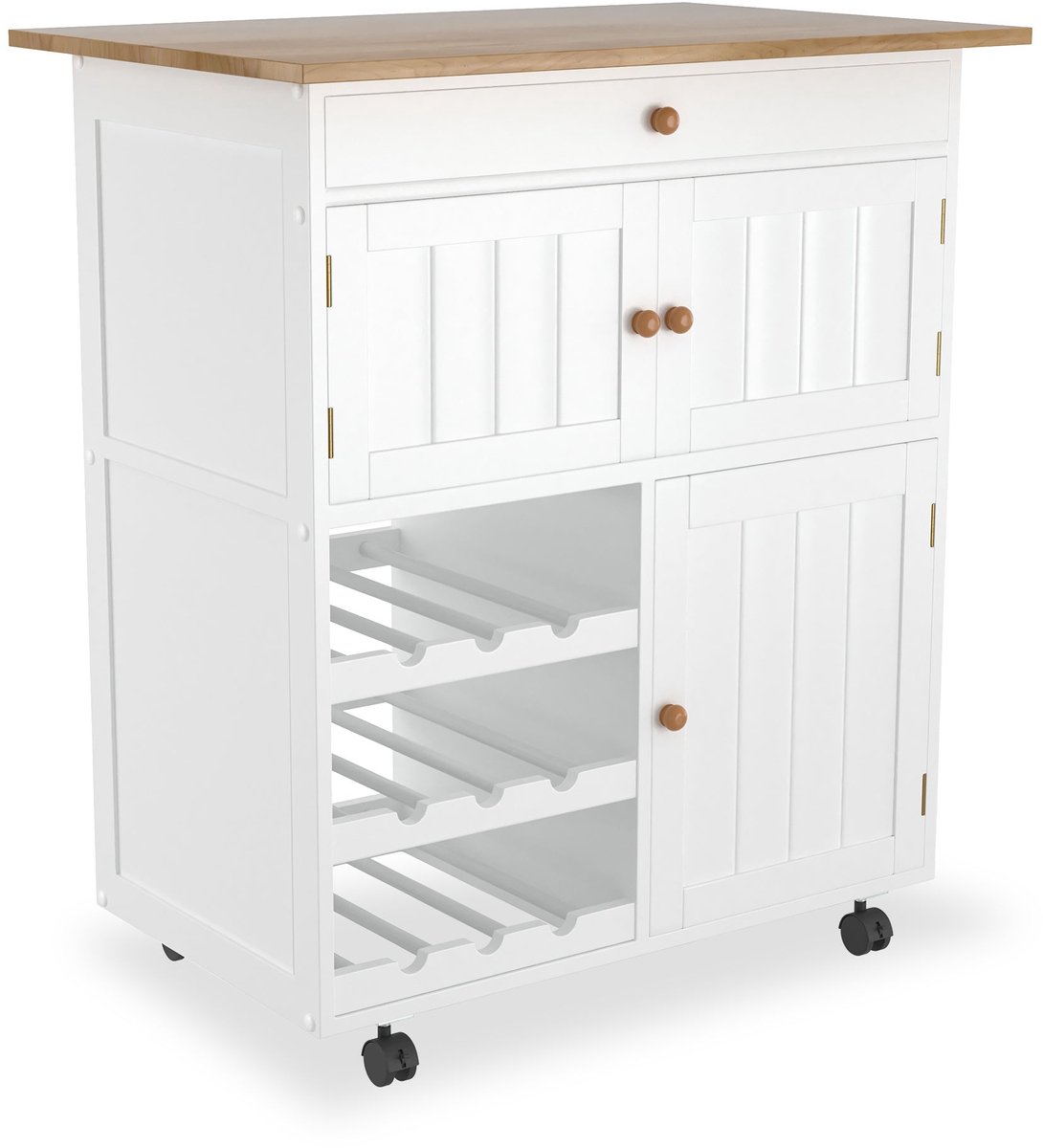 Keukentrolley - Keukenwagen - Servierwagen - Opbergtrolley - Barwagen - Wieltjes Met Remmen - Rubberwood Tafelblad 85x68x39 cm - Kookstore.nl