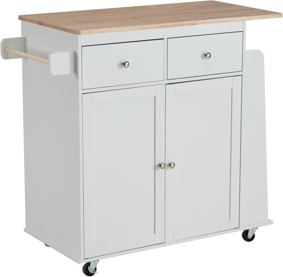 Keukentrolley met Wielen - Serviertrolley met Zijplank, Kruidenrek en Werkblad - Houten Keukenkastje - 88 x 46 x 89 cm - Wit/Hout - Kookstore.nl