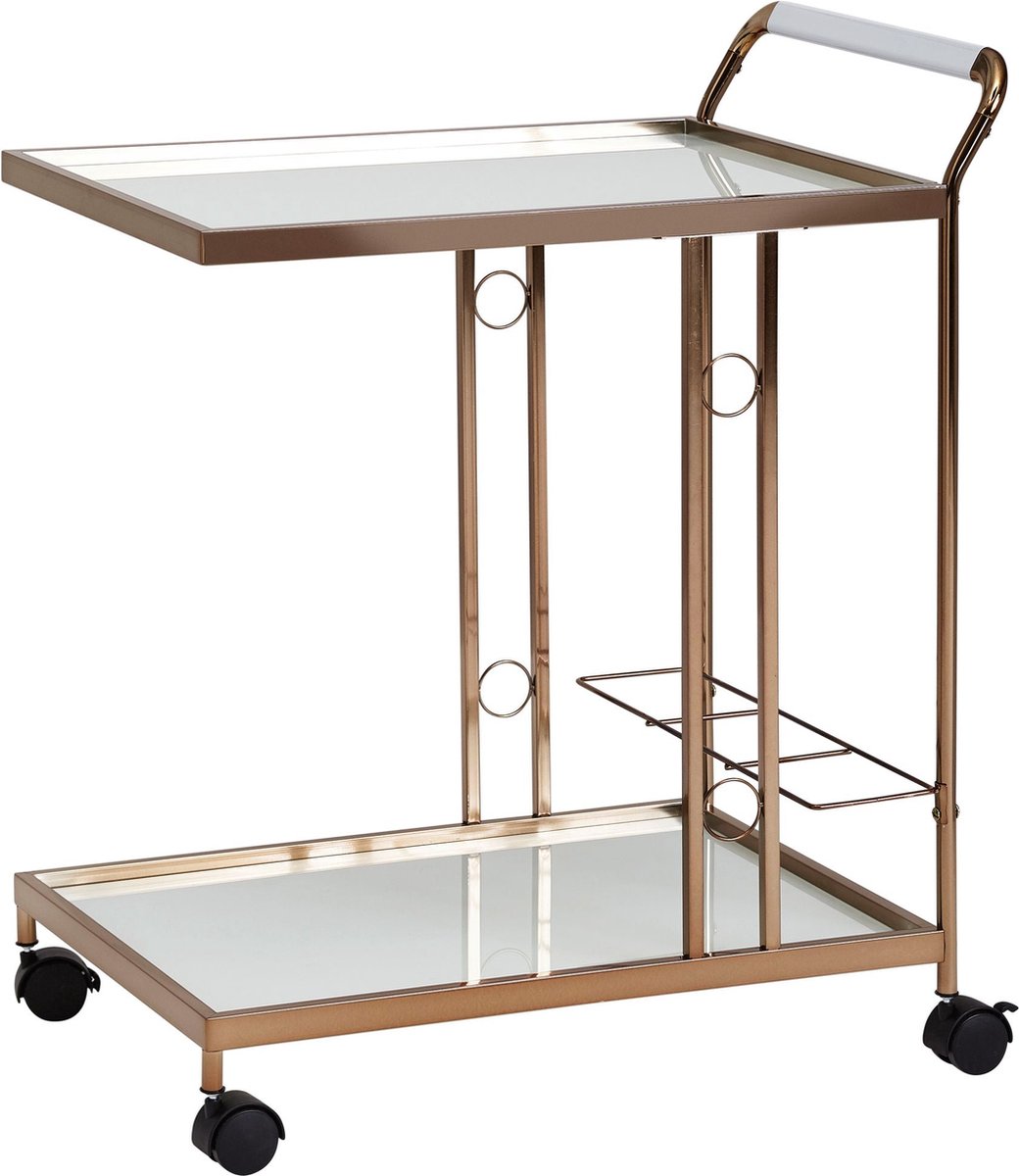 Design:De Kitchen trolley is een moderne serveerwagen in een trendy gouden kleur. De kar heeft een vleugje retro charme en twee platforms om je spullen op te bergen.