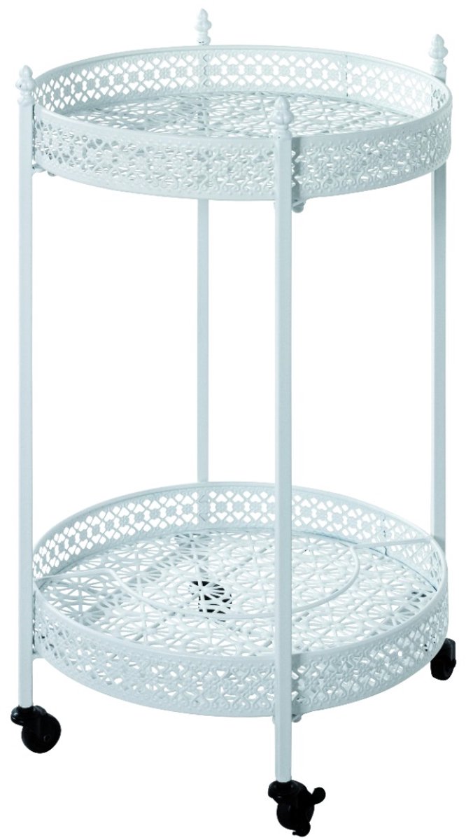 Keukentrolley – Wit metaal met stalen buisframe – Ronde trolley op wielen – 74 cm hoog, 45 cm diameter