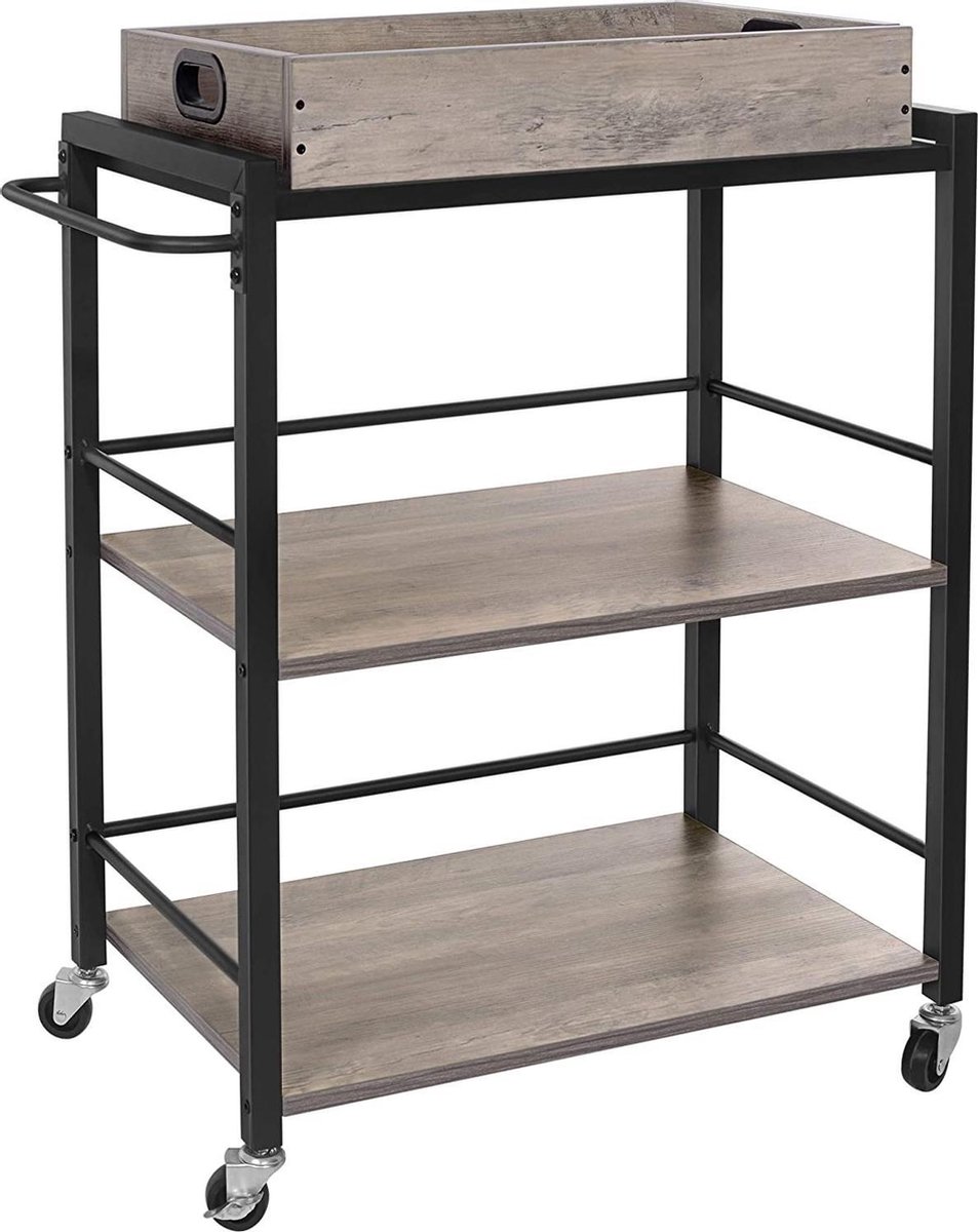 Keukenwagen – Serveerwagen – Keukentrolleys-Serveerwagen met afneembaar dienblad, afsluitbare keukentrolley met universele wielen, keukenrek, 65 x 40 x 86 cm, stabiel metalen frame, industrieel design, grijge-zwart