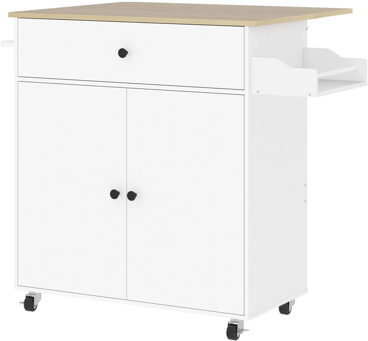 Keukeneiland - Keukentrolley - Keukenkast - Kookeiland - Werkblad - Uitklapbaar Werkblad - Melamine Afwerking - Wit en Eiken