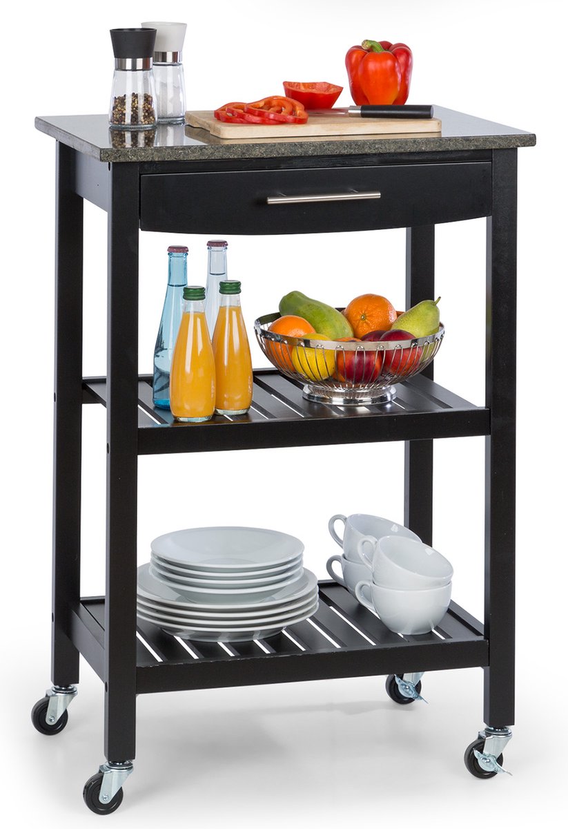 Edel en hoogwaardig: De Klarstein Tennessee keukenwagen is je luxueuze en dienstbare keukenhulp van gelakt hout met een werkblad van graniet.