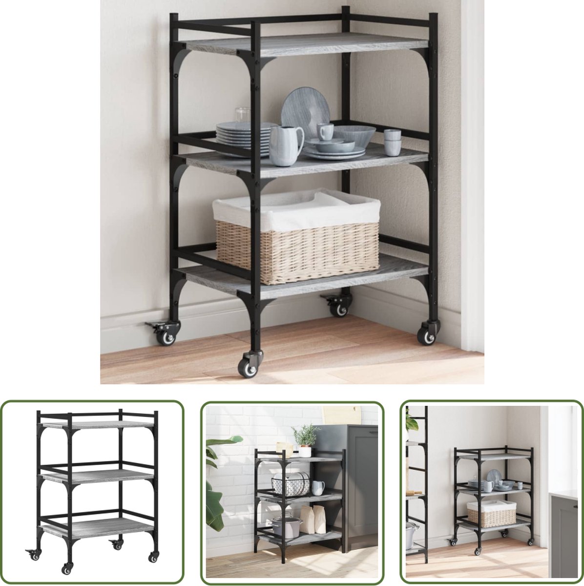 Keukentrolley 50x35x75,5cm bewerkt hout grijs sonoma eikenkleur Creëer een onderscheidend vintage tintje en voeg meer opbergruimte toe aan je keuken met deze keukentrolley!