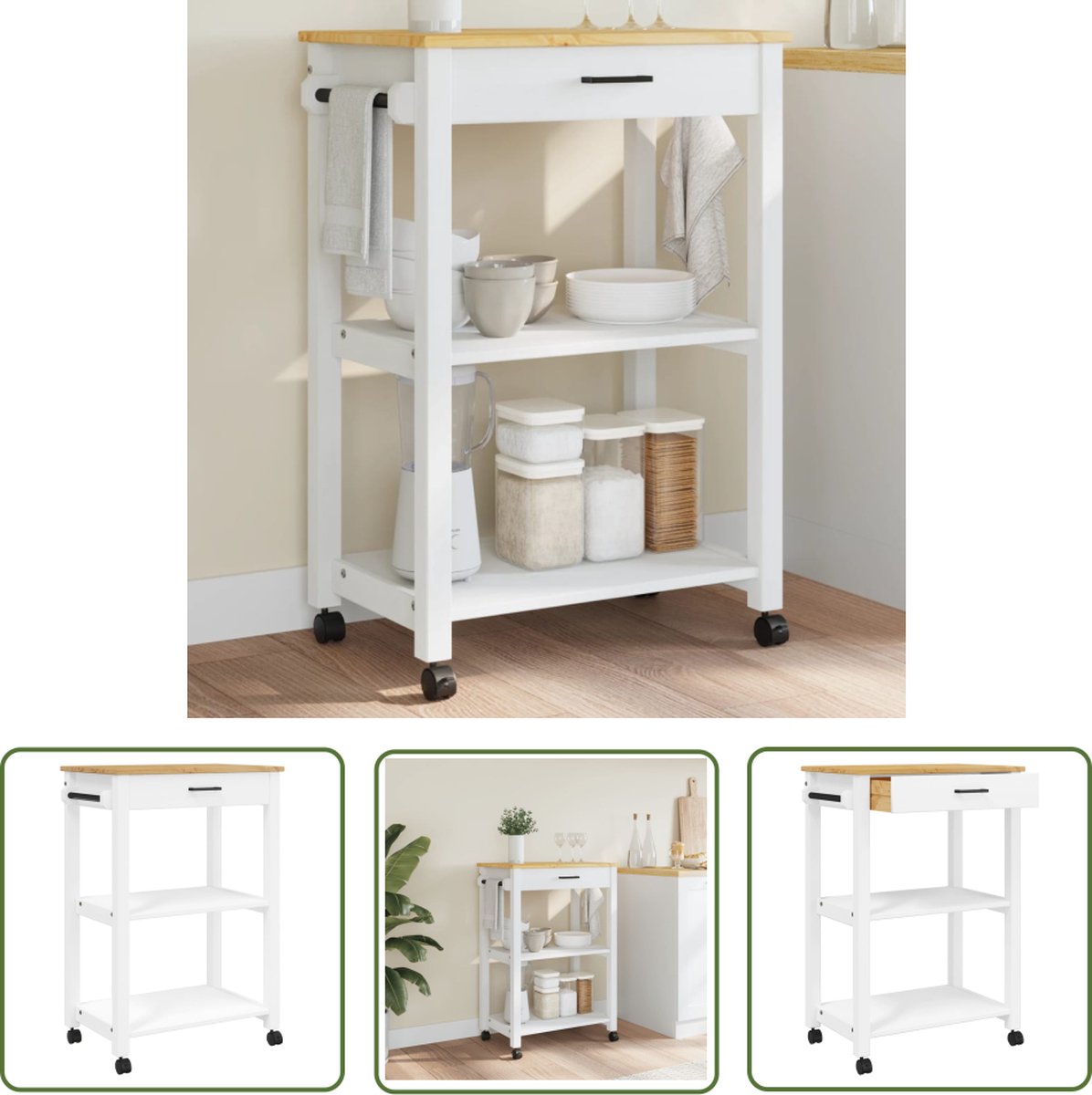 vidaXL Keuken Kar – Keuken Trolley – Keukentrolley MONZA 60x40x90 cm massief grenenhout – Grenoblehouten Trolley – Witte Keukentrolley – Honingkleurige Keukentrolley