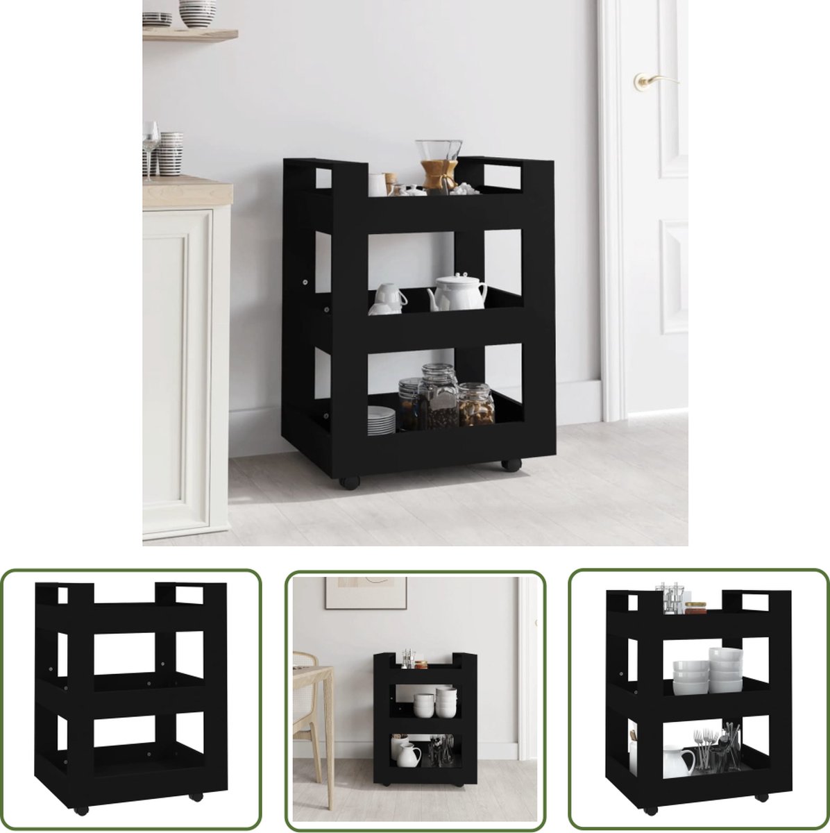 vidaXL Keukenkast – Keuken Trolley – Keukentrolley 60x45x80 cm bewerkt hout zwart – Houten Trolley – Kookeiland – Opbergwagen