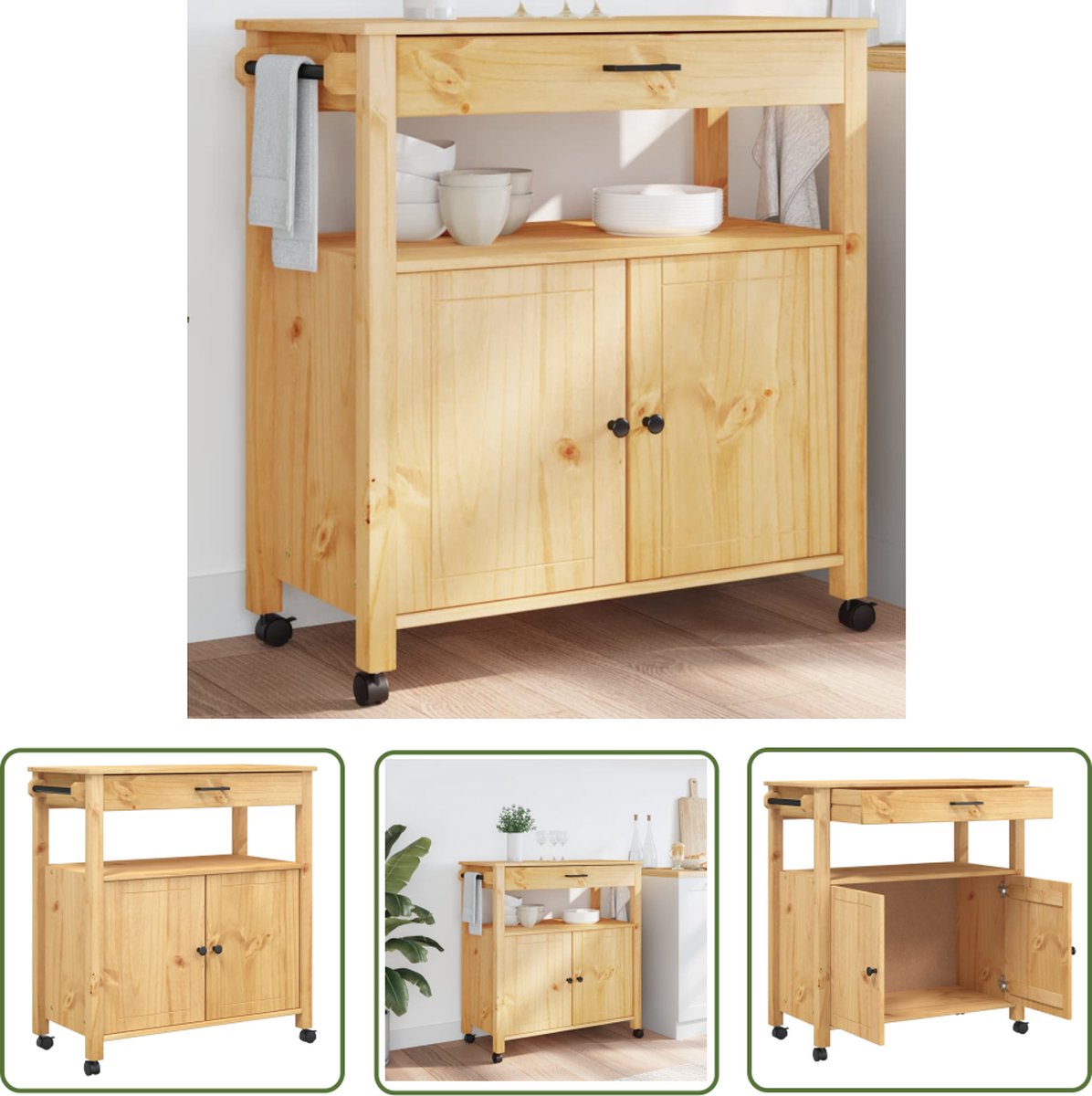 vidaXL Keukenkast – Keuken Trolley – Keukentrolley MONZA 84x40x90 cm massief grenenhout – Grenoblehouten Kast – Bruine Keukentrolley – Kookeiland