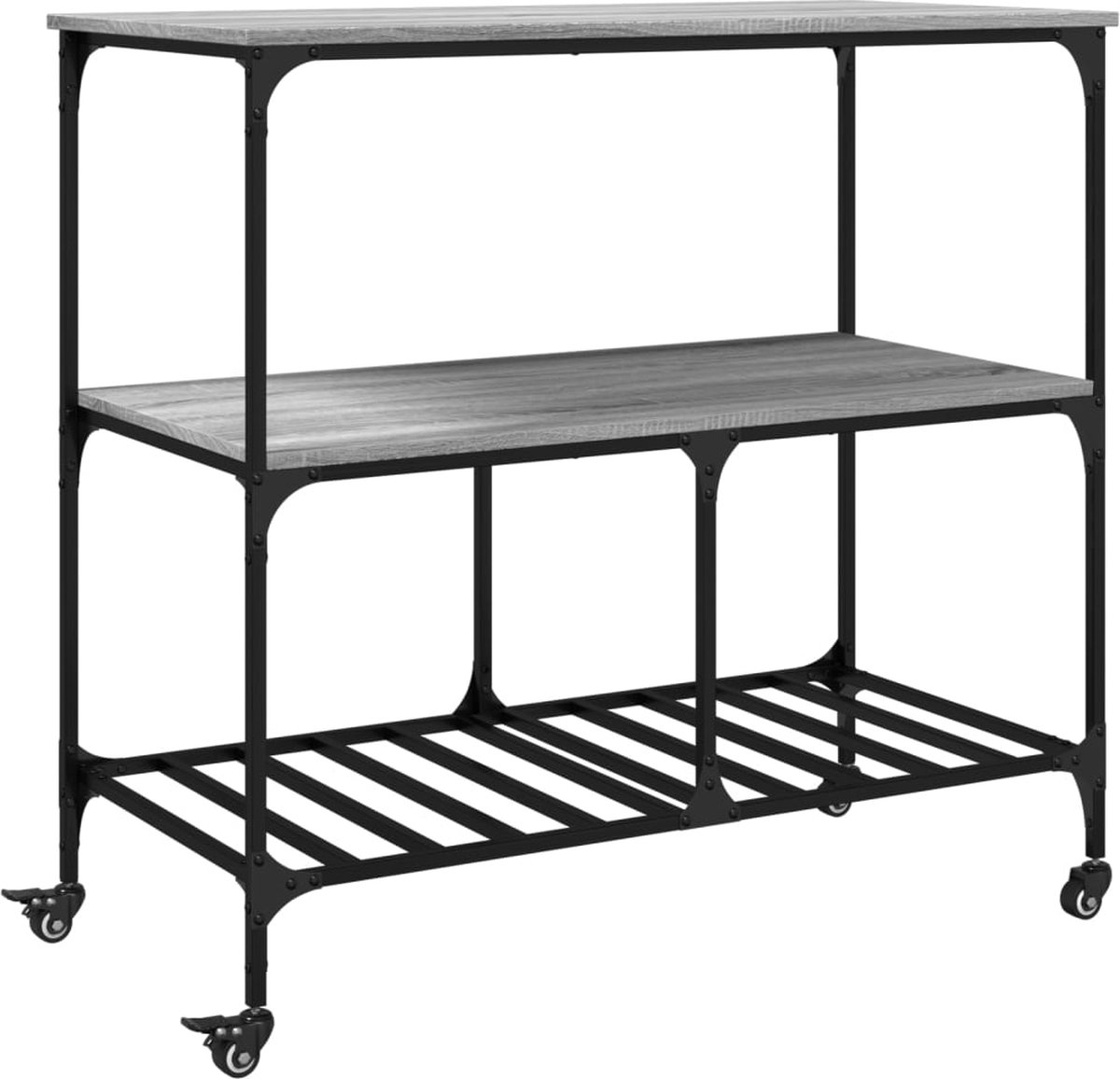 vidaXL – Keukentrolley – 100x50x95 – cm – bewerkt – hout – grijs – sonoma – eikenkleur