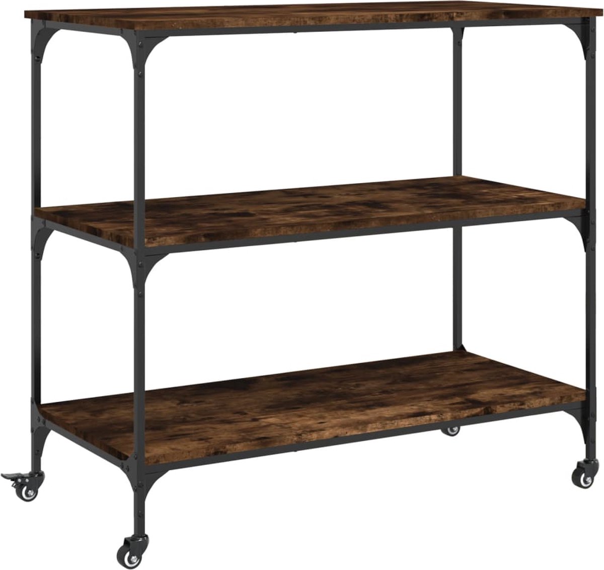 vidaXL - Keukentrolley - 102x50x95 - cm - bewerkt - hout - gerookt - eikenkleurig - Kookstore.nl