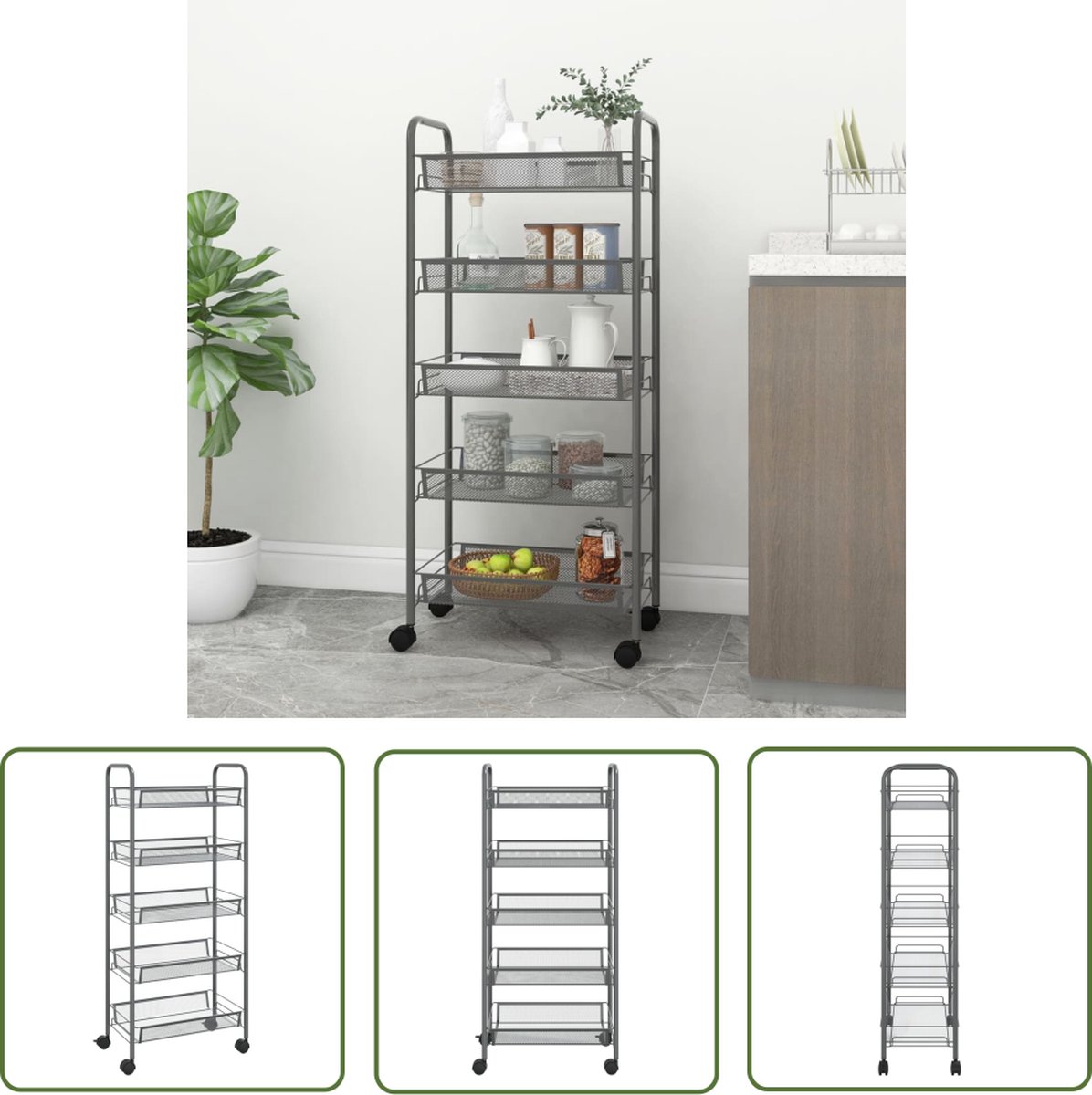 vidaXL Keukenkast – Keuken Trolley – Keukentrolley 5-laags 46x26x105 cm ijzer grijs – Opbergwagen – Multifunctionele Trolley – Roestvrijstalen Trolley