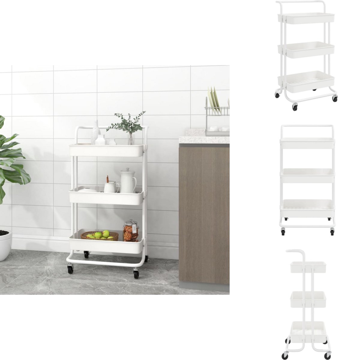 vidaXL Keukentrolley – Keukentrolleys – Badkamerkar – Badkamerkarren – Keukentrolley 3-laags 42x35x85 cm ijzer en ABS wit