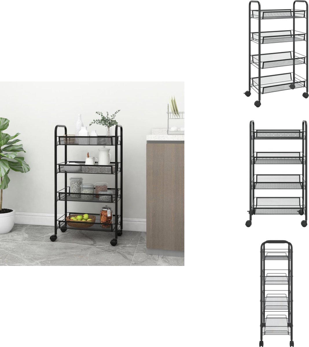 vidaXL Keukentrolley - Keukentrolleys - Badkamerkar - Badkamerkarren - Keukentrolley 4-laags 46x26x85 cm ijzer zwart - Kookstore.nl