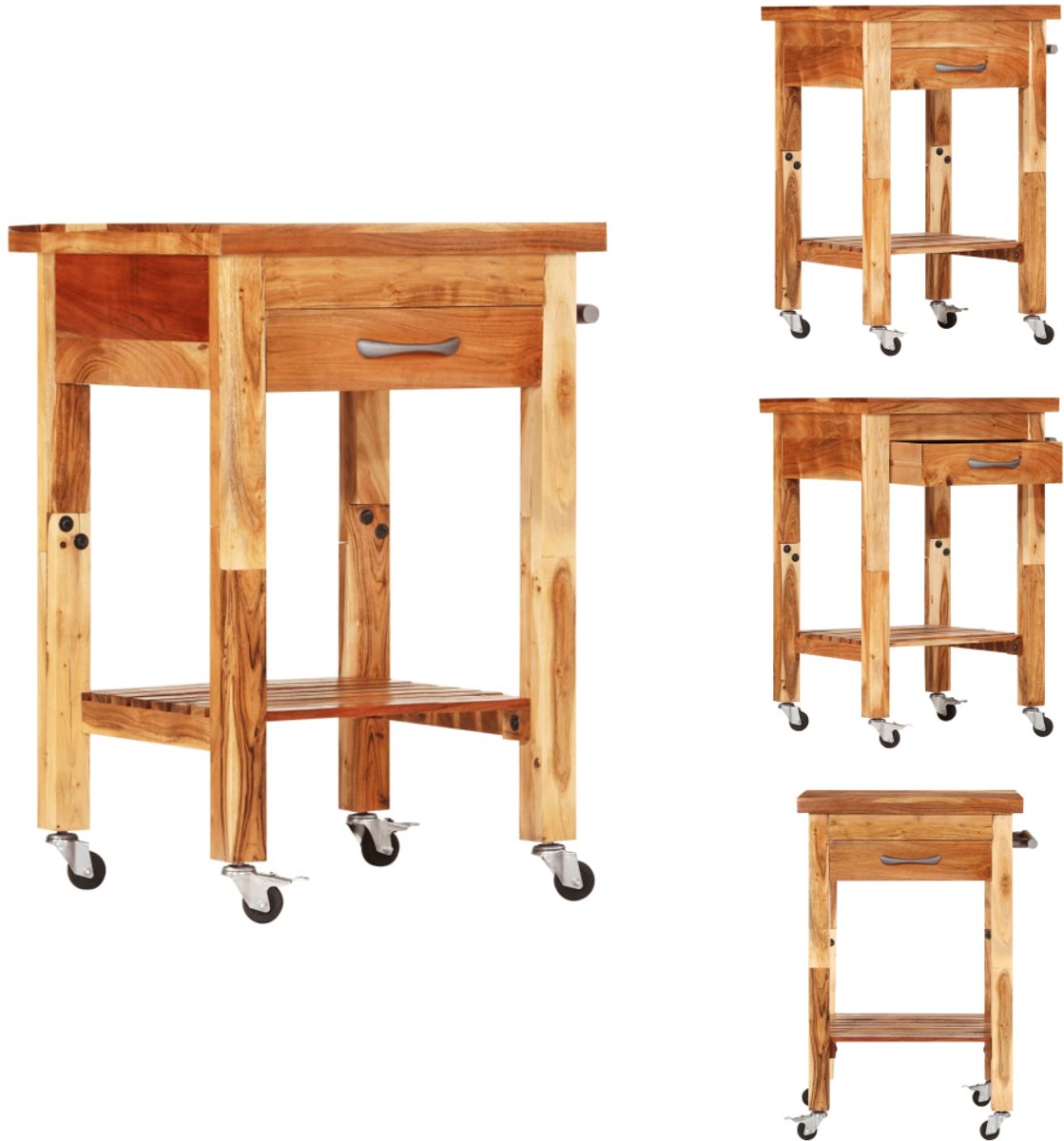 vidaXL Keukentrolley – Keukentrolleys – Groentenkar – Keuken Trolley – Keukentrolley 55x55x89 cm massief acaciahout