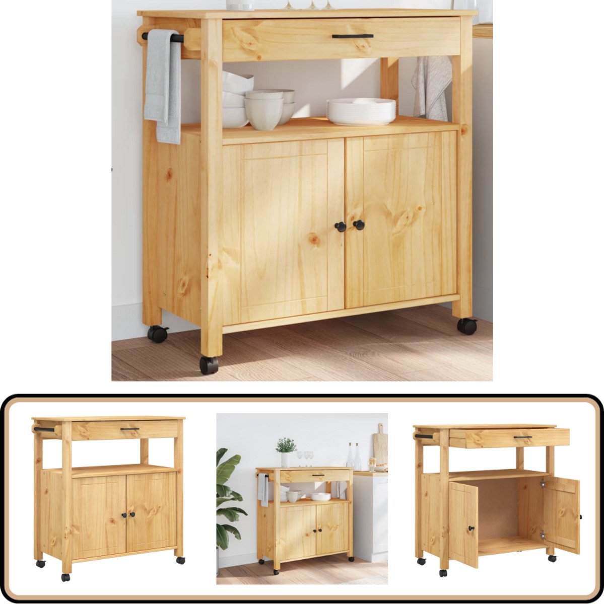 De perfecte toevoeging aan jouw keuken De vidaXL Keukentrolley MONZA is niet alleen functioneel, maar ook een stijlvolle aanvulling op jouw interieur. Gemaakt van massief grenenhout en afgewerkt in een warme honingwas, straalt deze keukentrolley een natuurlijke en tijdloze charme uit. Met afmetingen van 84 x 40 x 90 cm (L x B x H) biedt deze trolley voldoende opbergruimte zonder te veel ruimte in beslag te nemen.