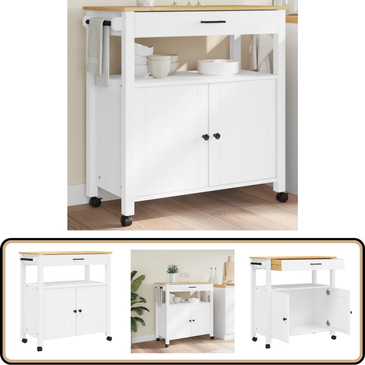 vidaXL Keukentrolley MONZA – Praktisch en Stijlvol Creëer extra opbergruimte in jouw keuken met de vidaXL Keukentrolley MONZA. Deze veelzijdige keukenkast combineert functionaliteit met een stijlvol design. Uitgevoerd in een prachtige wit met honingwas afwerking, past deze trolley perfect in zowel moderne als klassieke keukens. Gemaakt van massief grenenhout en bewerkt hout, is dit meubelstuk niet alleen stevig, maar ook duurzaam.