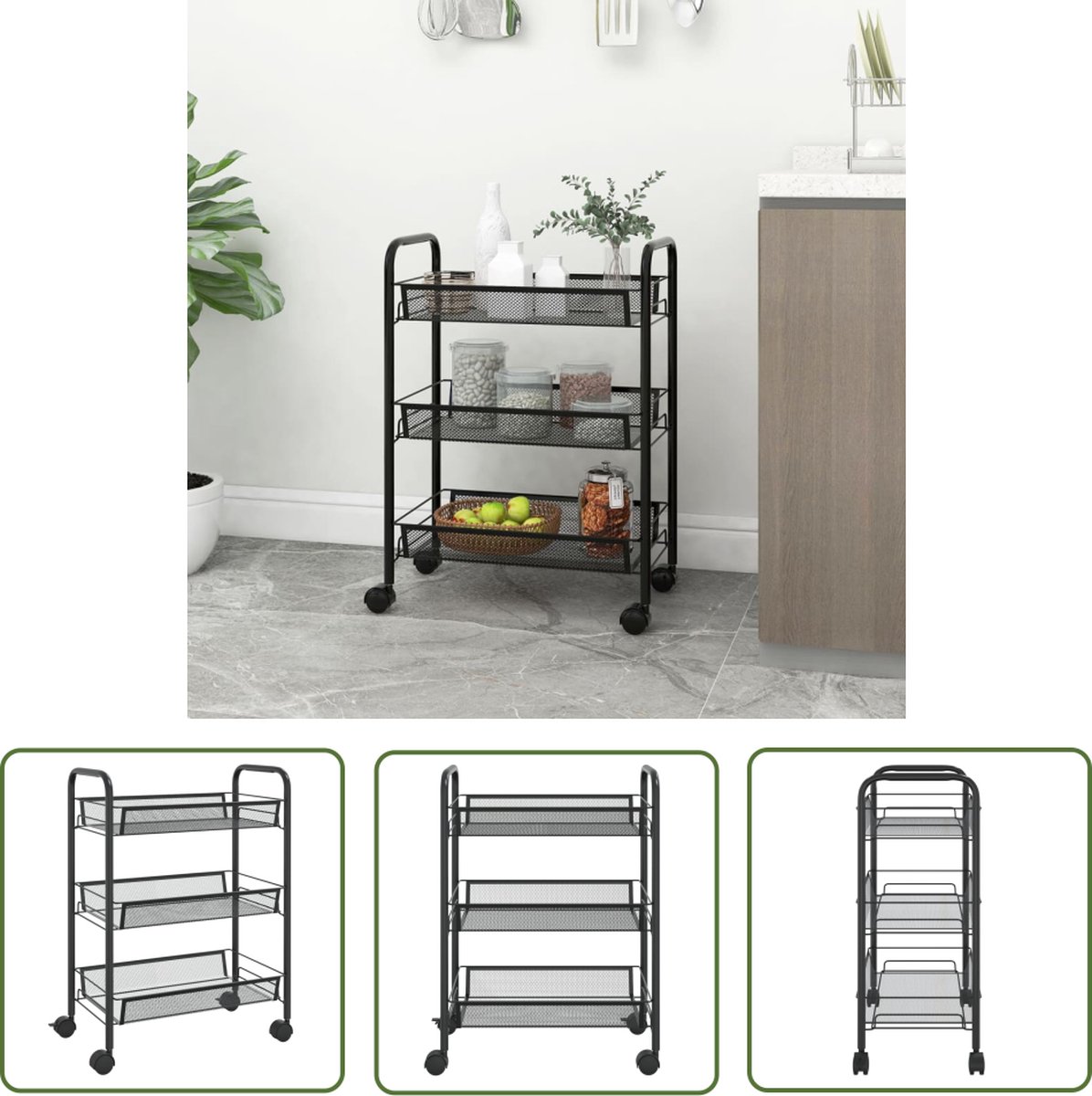 vidaXL Zwarte Trolley - Keuken Trolley - Keukentrolley 3-laags 46x26x64 cm ijzer zwart - Multifunctionele Trolley - Roestvrijstalen Trolley - Kookeiland Trolley - Kookstore.nl
