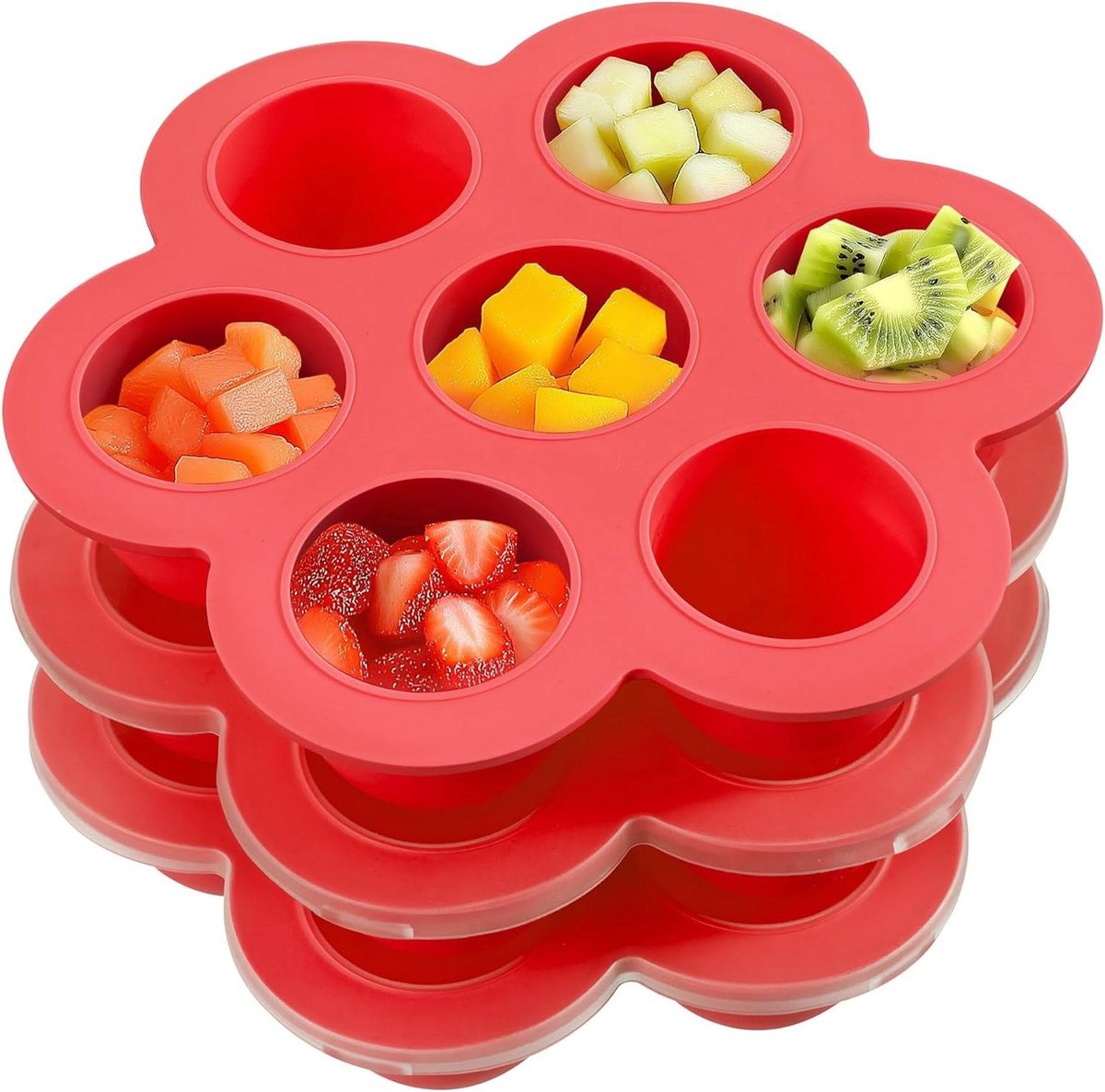 Bewaarbakjes babyvoeding voor 7 porties – IJsblokjesvorm met deksel – Rood .