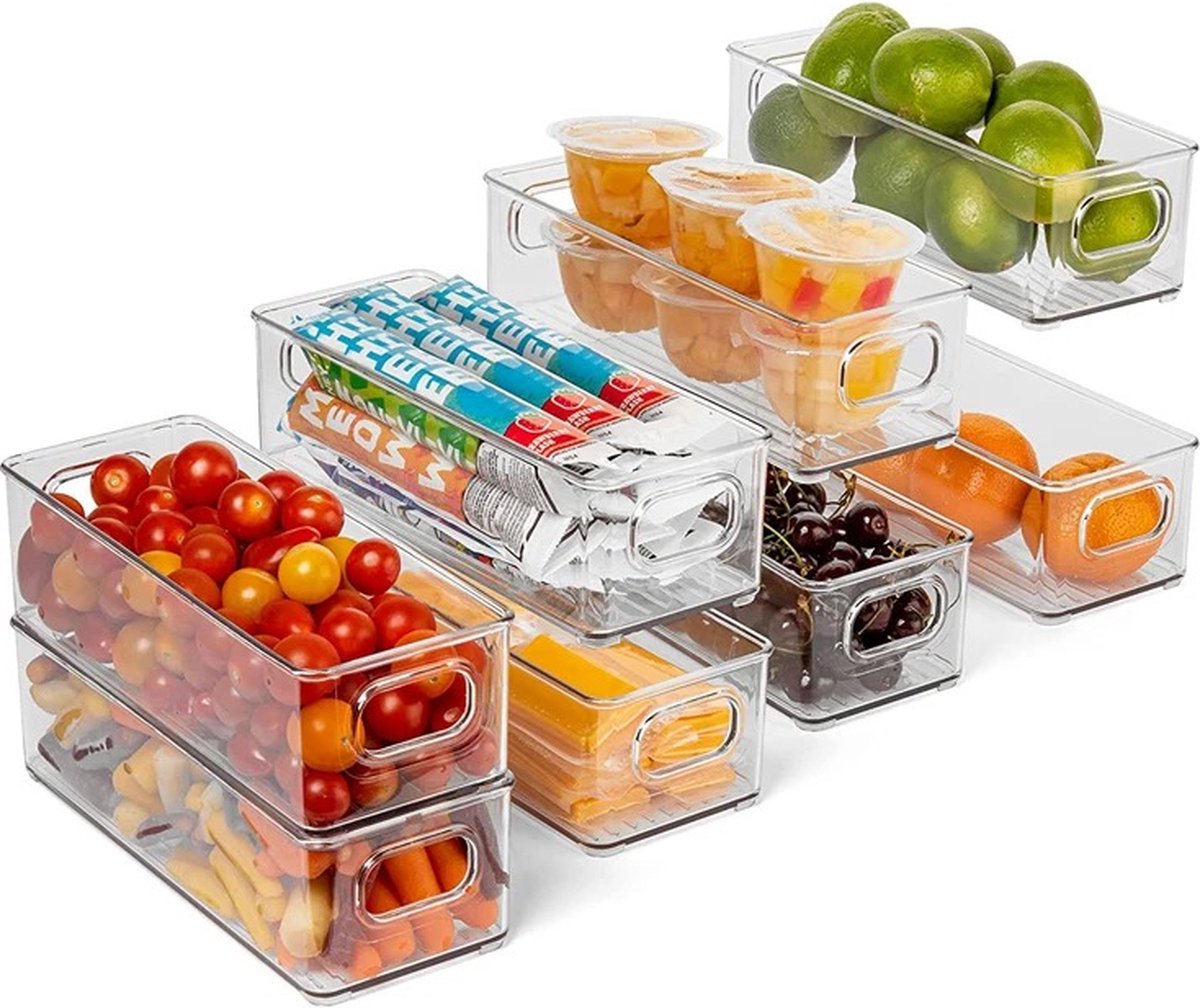 Koelkast Organizer - Set van 8 Stuks - Opbergbak - Lade Organizer - Lade Verdeler -Koelkast Bakjes - Bewaarbakjes - Stapelbaar - Transparant - BPA-Vrij