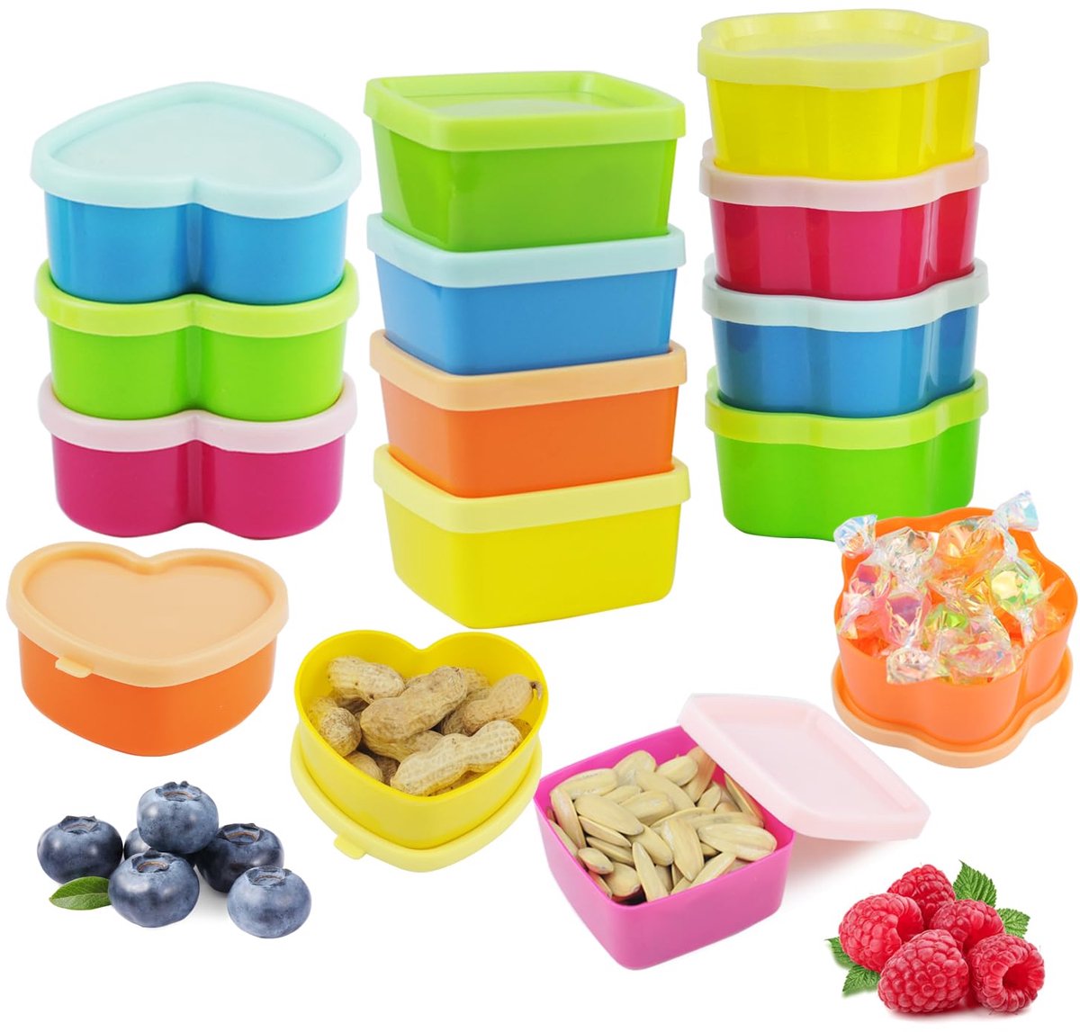 [Premium PP-materiaal]: Gemaakt van voedselveilig, BPA-vrij PP-plastic – geurloos en breukvast. Perfect voor frequent gebruik en hygiënische opslag. [15-delige set]: 15 stapelbare mini-containers (40 ml) in 5 kleuren met goed sluitende deksels. Ideaal voor maaltijdvoorbereiding, op kantoor, op school of op reis. Kleurgecodeerd voor eenvoudige organisatie. [Optimale Versheid]: Dankzij de luchtdichte afsluiting blijven etenswaren langer vers – beschermd tegen vocht, geurtjes en stof. Bijzonder geschikt voor noten, specerijen, snacks en gedroogd fruit. Ruimtebesparend ontwerp: het stapelbare en nestbare ontwerp maakt ruimtebesparende opslag in kasten, koelkasten of rugzakken mogelijk. Bespaart tot 60% opslagruimte ten opzichte van conventionele containers.