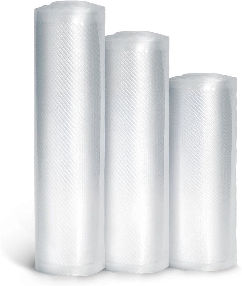 Ben je het ook zat om voedsel weg te gooien omdat het te snel bederft, of omdat je diepvriesproducten na een paar weken vol vriesbrand zitten? Dat is niet alleen frustrerend, maar ook zonde van je geld en moeite. De Vacuumrollen – Wit bieden dé oplossing: een professionele set van 3 geperforeerde vacuumrollen van elk 6 meter lang in de breedtes 20 cm, 25 cm en 28 cm – perfect afgestemd op jouw keukengebruik. Ideaal voor het vers houden van groenten, vlees, vis, brood of restjes en zelfs geschikt voor sous vide koken tot 85°C gedurende 24 uur.