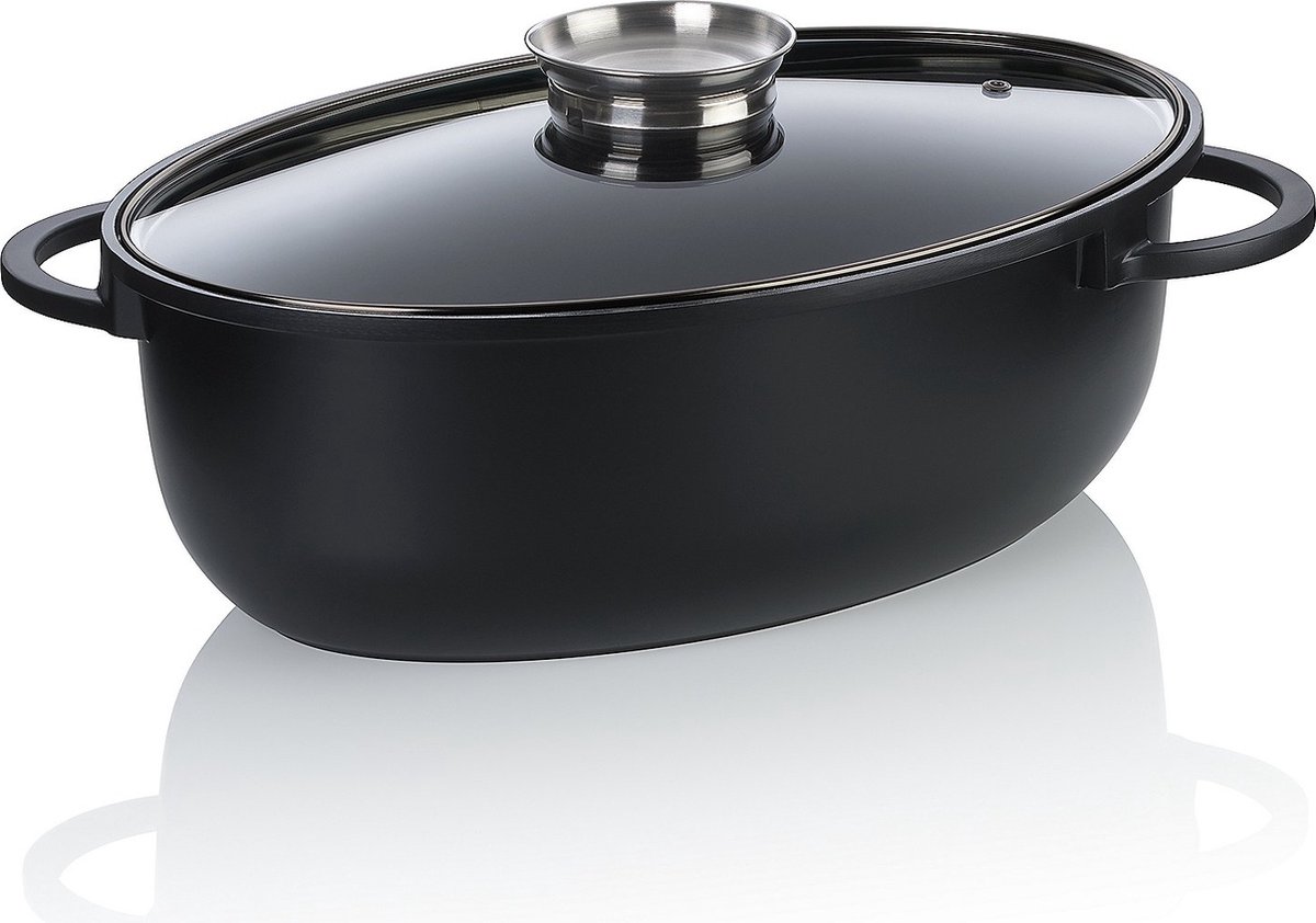 Braadpan, 8.0 L, met Deksel, Zwart, Non-stick, PFAS/PTFE vrij, Gegoten Aluminium – Kela | Atura