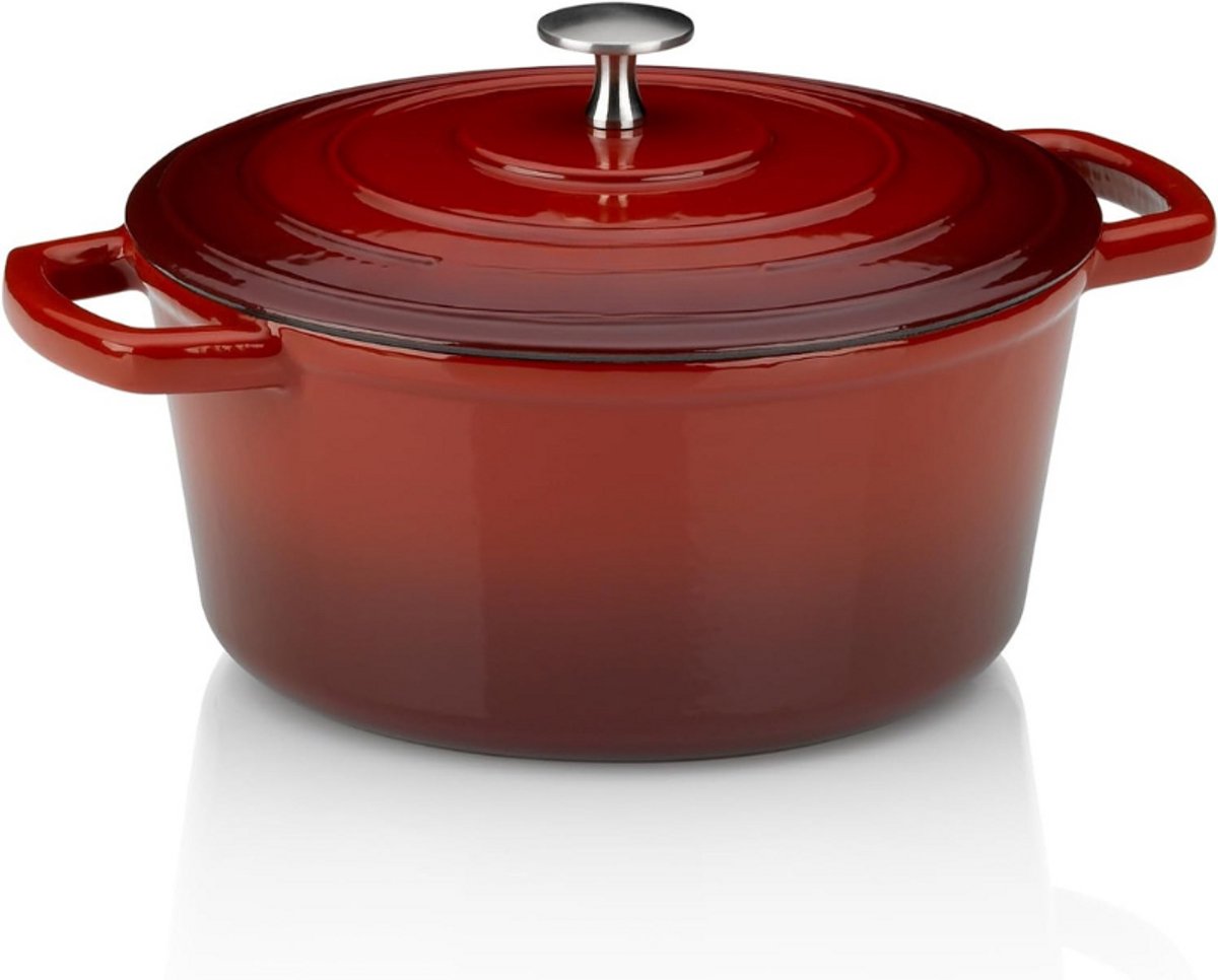 Braadpan Met Deksel – Gietijzer Met Emaillelaag – Calido – Ø 24 Cm – 4 Liter – Rood – Rond – Geschikt Voor Inductiekookplaten