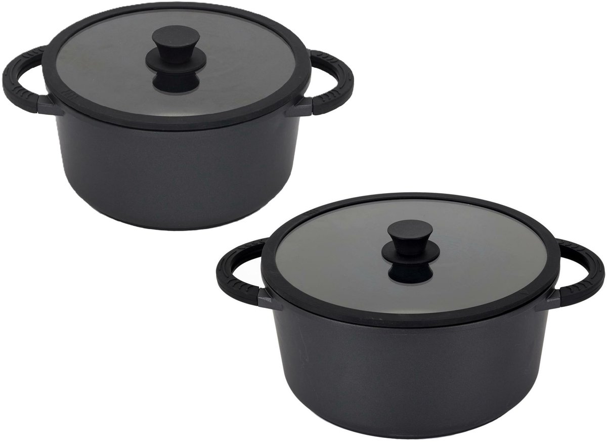 Braadpan/stoofpan – 2x – cast aluminium – 5 en 9 liter – 24 en 28 cm – antraciet – stoofpotten
